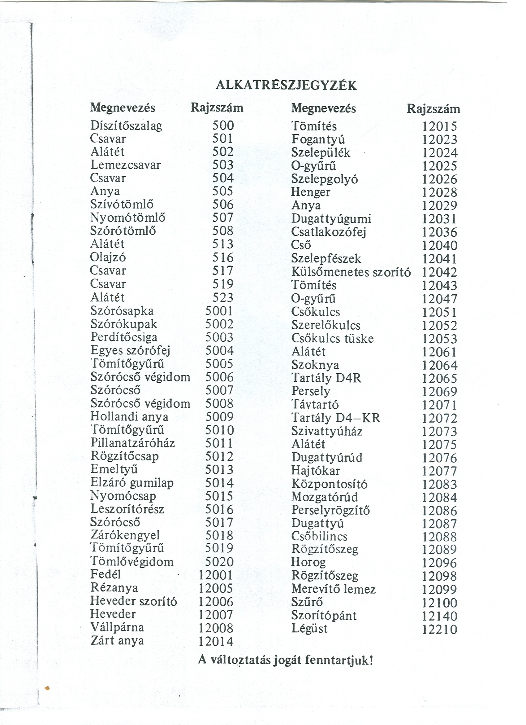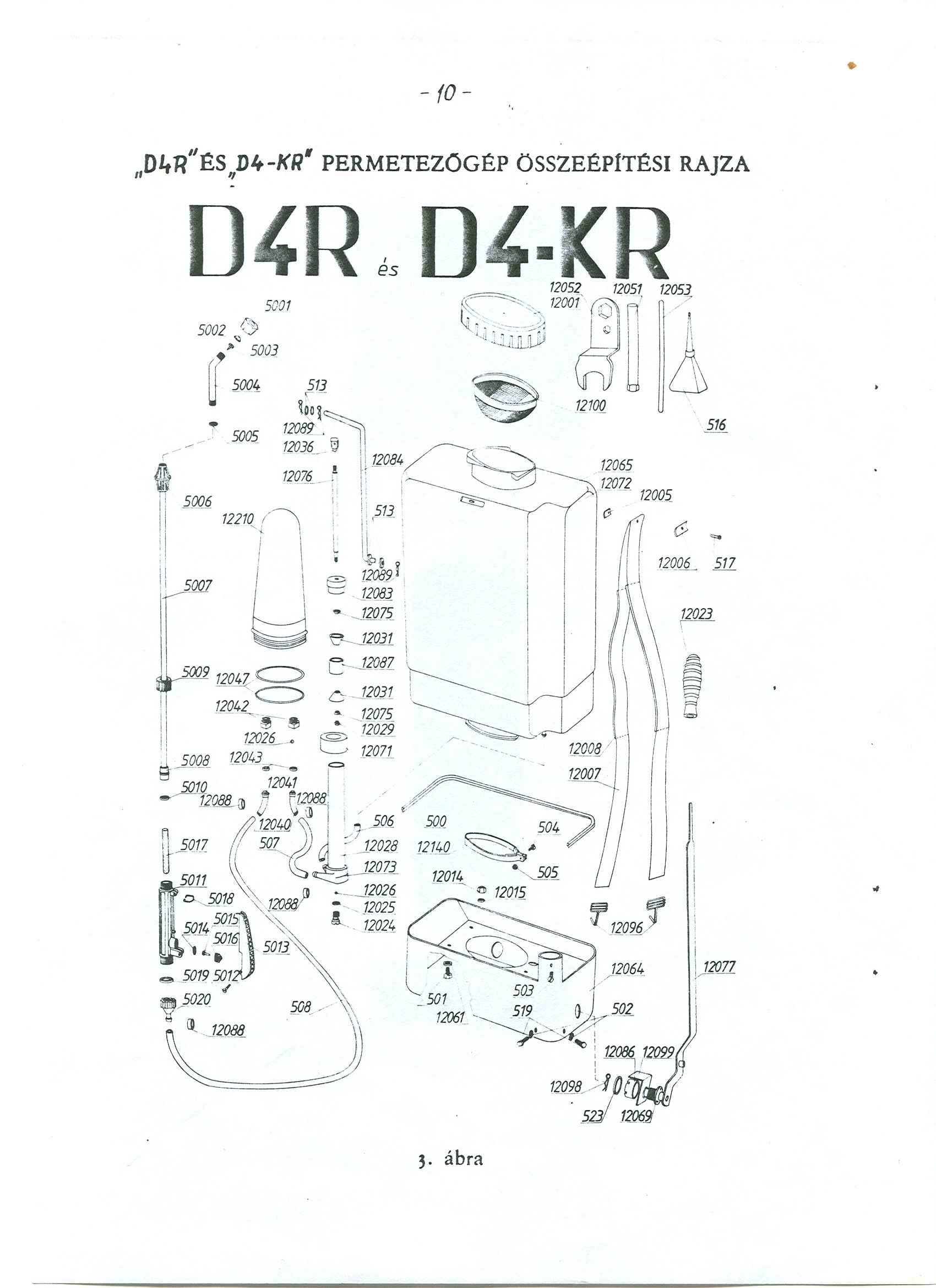 D4-es vegyépszeres háti permetező alkatrész jegyzéke