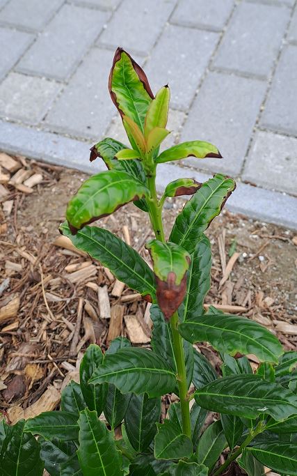 1hete ültettünk babérmeggy-eket. De látok rajtuk sárgulást és néhol a szára barnulni kezd. Mi lehet a gond?