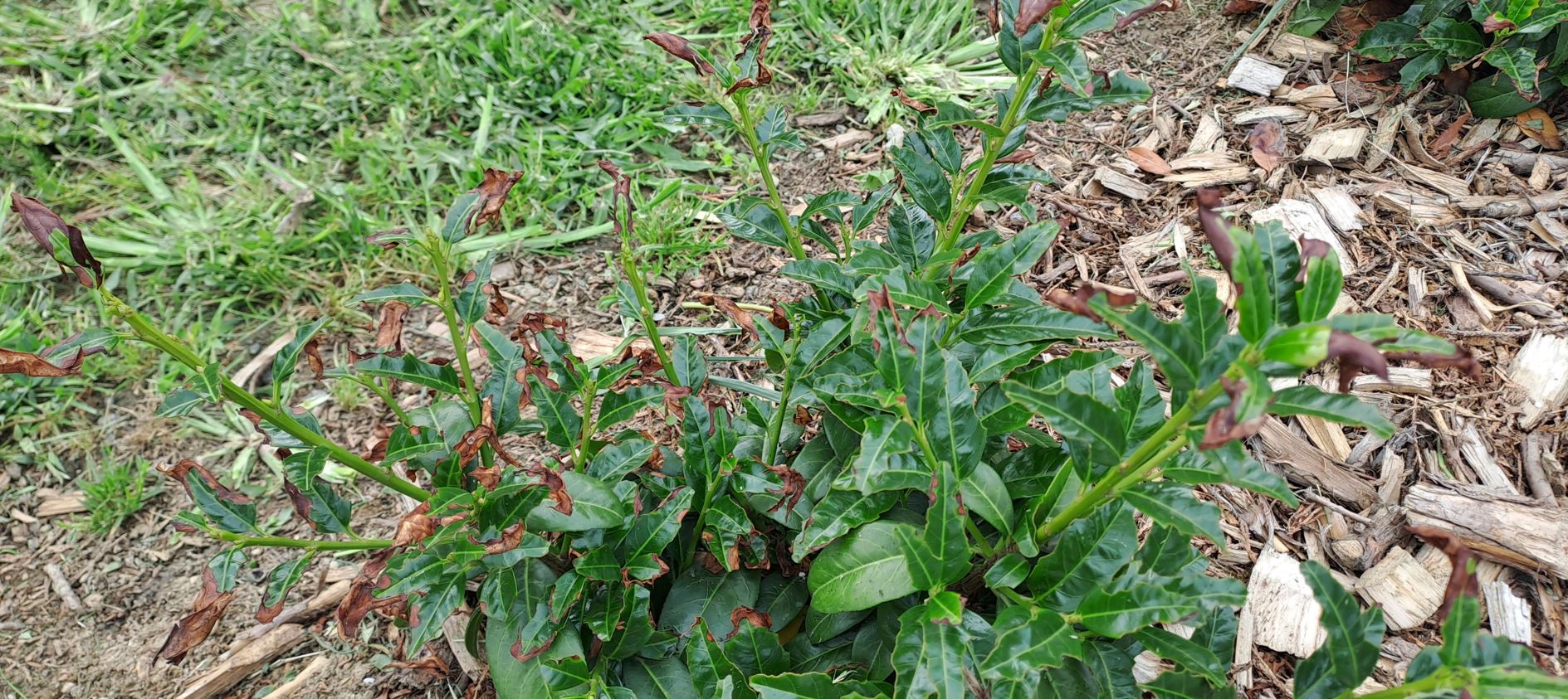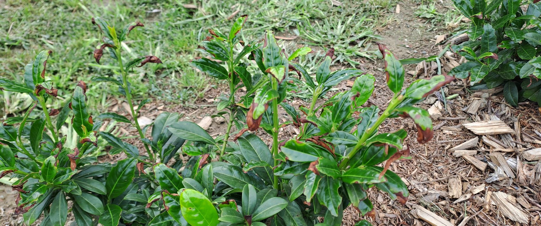 Tavasszal kiültetett babérmeggyeink levelei a képen látható módon kezdtek barnulni pár hete. Minden nap locsolva vannak. Kérdésem az, hogy mi lehet a bajuk és hogyan tudnám megmenteni őket? Megtisztelő válaszukat előre is köszönöm!