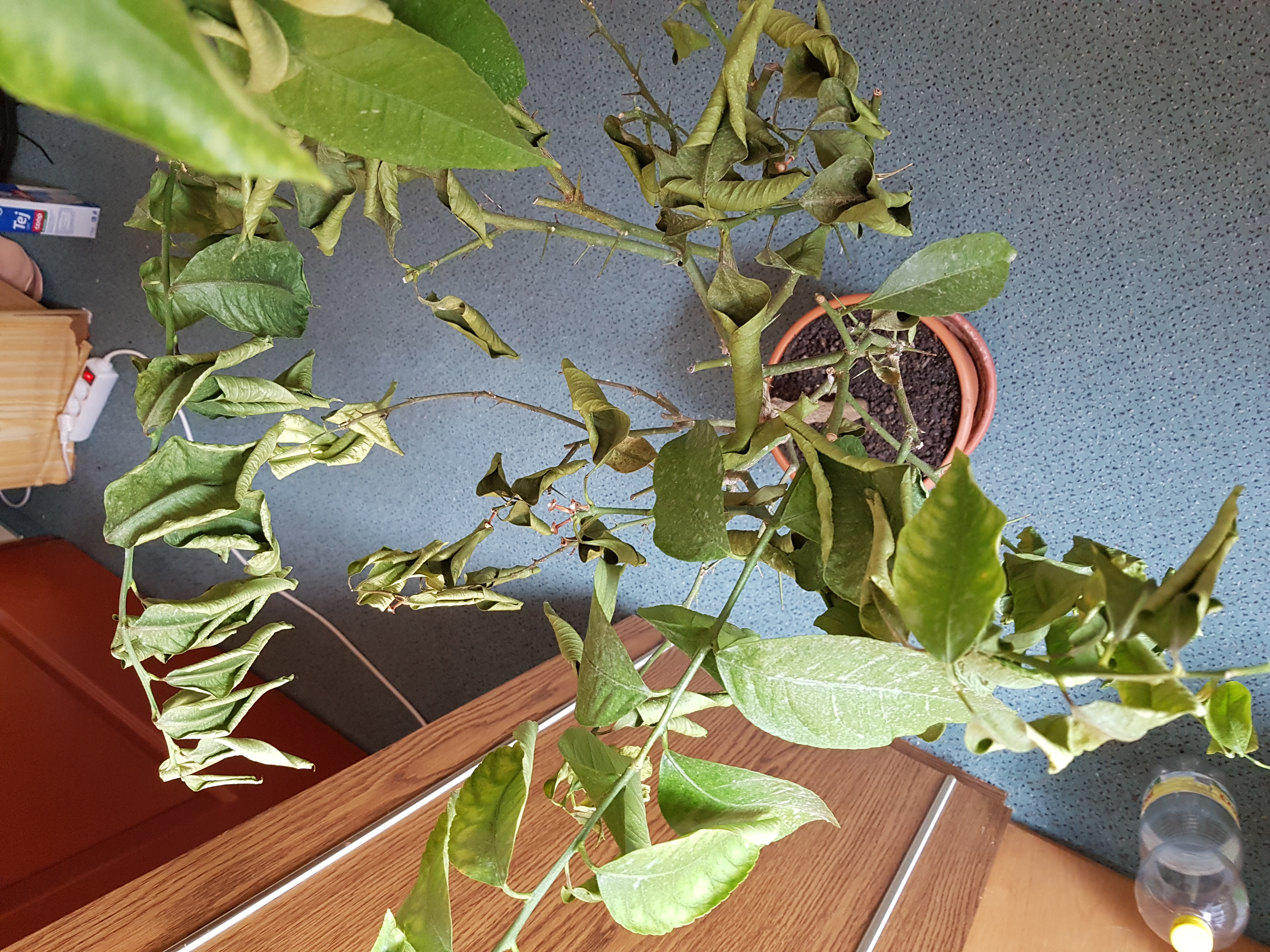 Segítségét szeretném kérni, mert nagyon aggódom a kis mandarinfámért.Több mint egy hónapja kaptam tele volt mandarinnal és levéllel.Azonban egy pár hete elszaporodott a pajzstetű az egyik növényen, amihez elég közel volt.Így egy kicsit az ő földjére is öntöttem a permetből.Egyet kettő tetűt láttam is rajta.Természetes le is mostam elötte.A permet neve Spilan 20 SG volt.Utána egy pár nap múlva elkezdte lehullajtani a termését és leveleit is.Eddig 2 hetente öntöztem, de most hetente, mivel olyan kiszáradásnak tünik, de lehet tévedek.Vettem neki tápoldatot is a Substral citrus a neve.Meglocsoltam vele ,de nem javul.Lakásba volt eddig , de hullajtotta a levelét, ezért kiraktam a lépcsőházba.Ott egy pár fokkal hidegebb van.Igen és csak ásványvizzel locsoltam.Permetezni is szoktam heti többszőr.Nagyon rosszul néz ki.Mellékelek hozzá képet.Kérem segítsen.Nagyon fontos lenne, olyan emlékekhez kötödik ,ami különösen fontása tette.Szárad sajnos nem csak a levelei, de a szára is.Mi lehet a baja ? Mit csináljak?