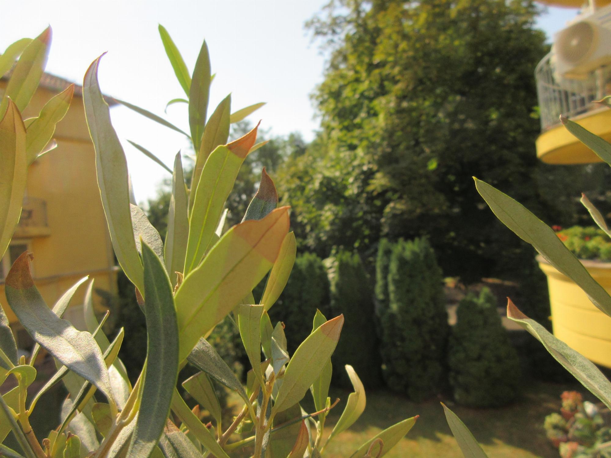 Kedves Judit! A mediterrán olajfa számára a mi száraz kontinentális éghajlatunk nem megfelelő, mert nem elegendő a légnedvesség. A Mediterráneumban a tenger párolgása elegendő párát szállít, ezért élnek meg még nagy melegben, eső hiányában is az olajfák és egyéb mediterrán növények. Nálunk már lassan két hónapja nem esett számottevő eső, nagy a légszárazság.l Továbbá a frissen átültetett növény nem tud a meleg miatt elég tápanyagot felvenni. Ezen összetett hatások miatt szárad a levélcsúcs.Célszerű ezeket a növényeket egy árnyékosabb, párásabb helyre áthelyezni, pl. nagyobb fa, lugas alá. Nem közvetlenül a növényeket érő hűsítő, párásító öntözés segíthet. Természetesen a tápanyag-utánpótlásról sem szabad megfeledkezni.