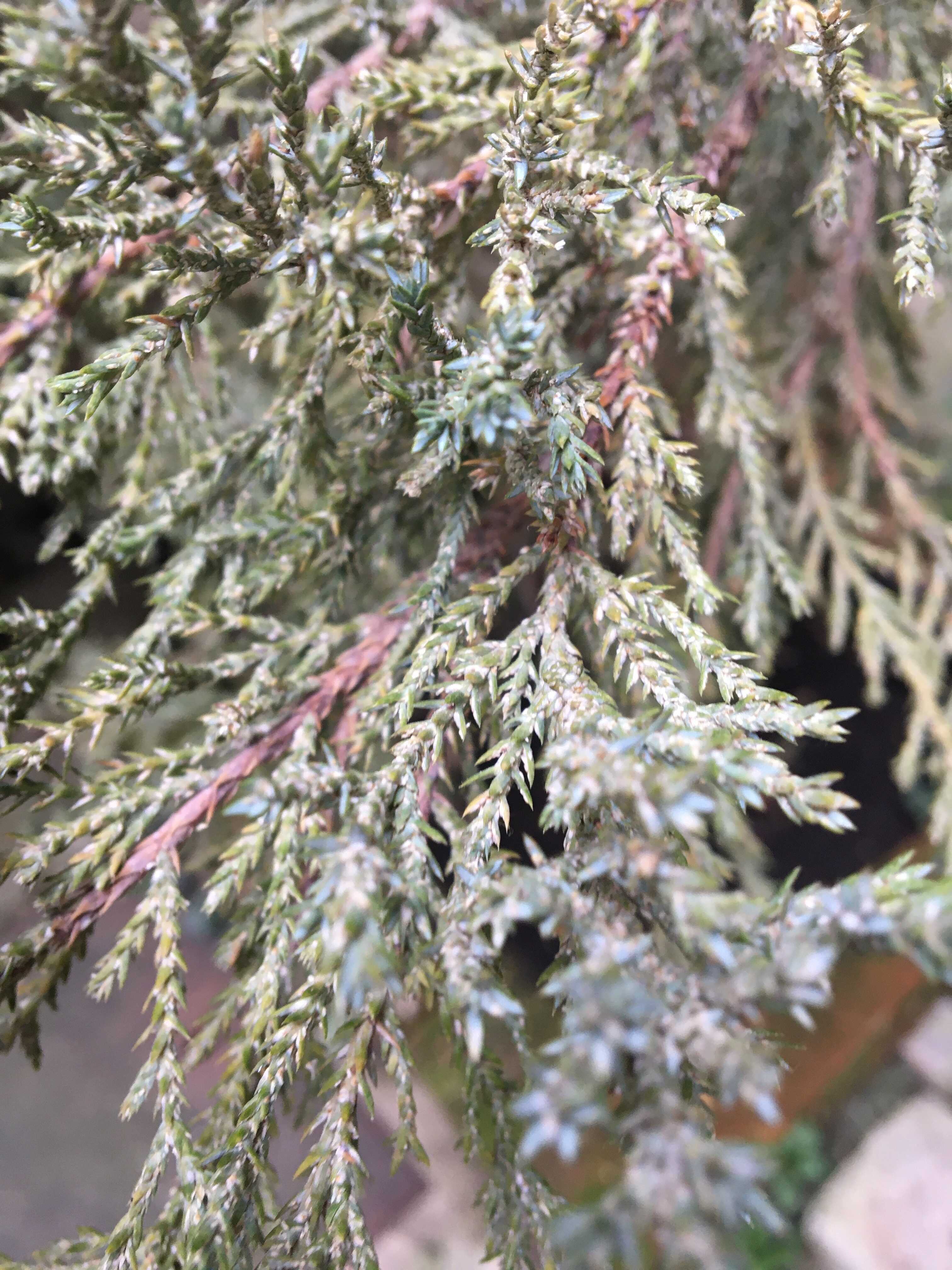 Szeretném a véleményüket kérni a mellékelt képek alapján a zöld tuja tüskés leveleken látható fehéres lerakodás természetes vagy valamilyen betegségre utal?