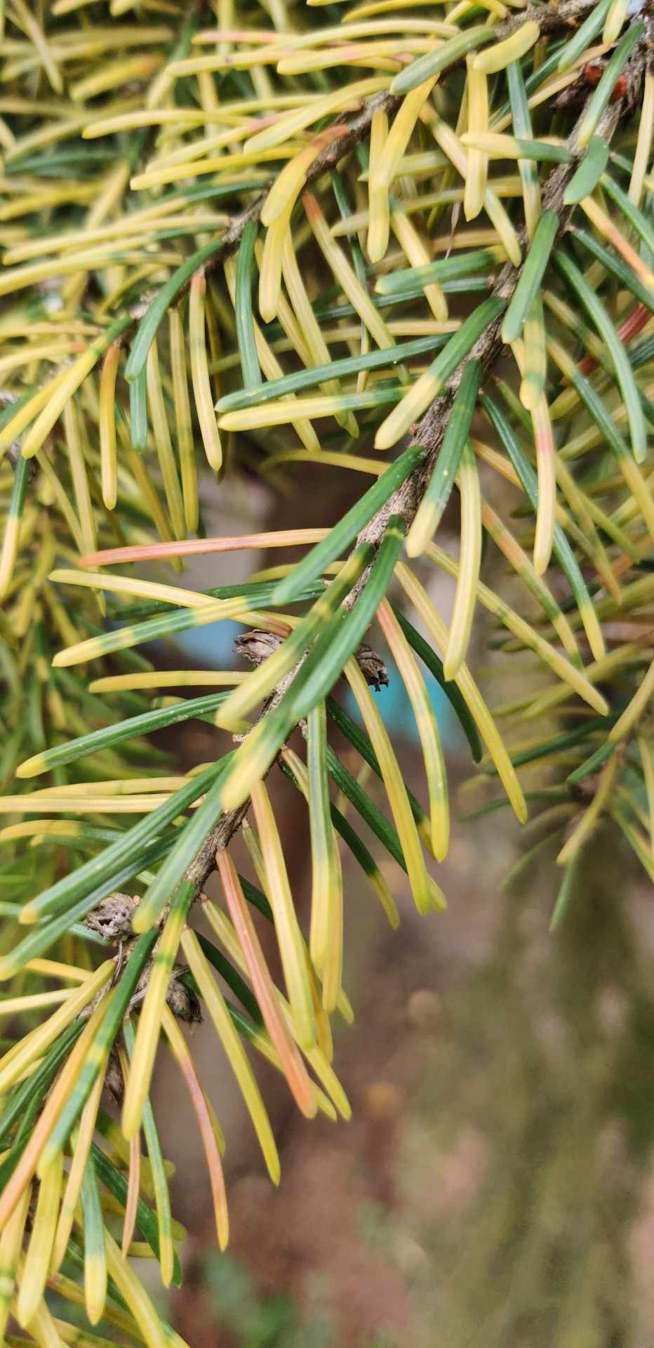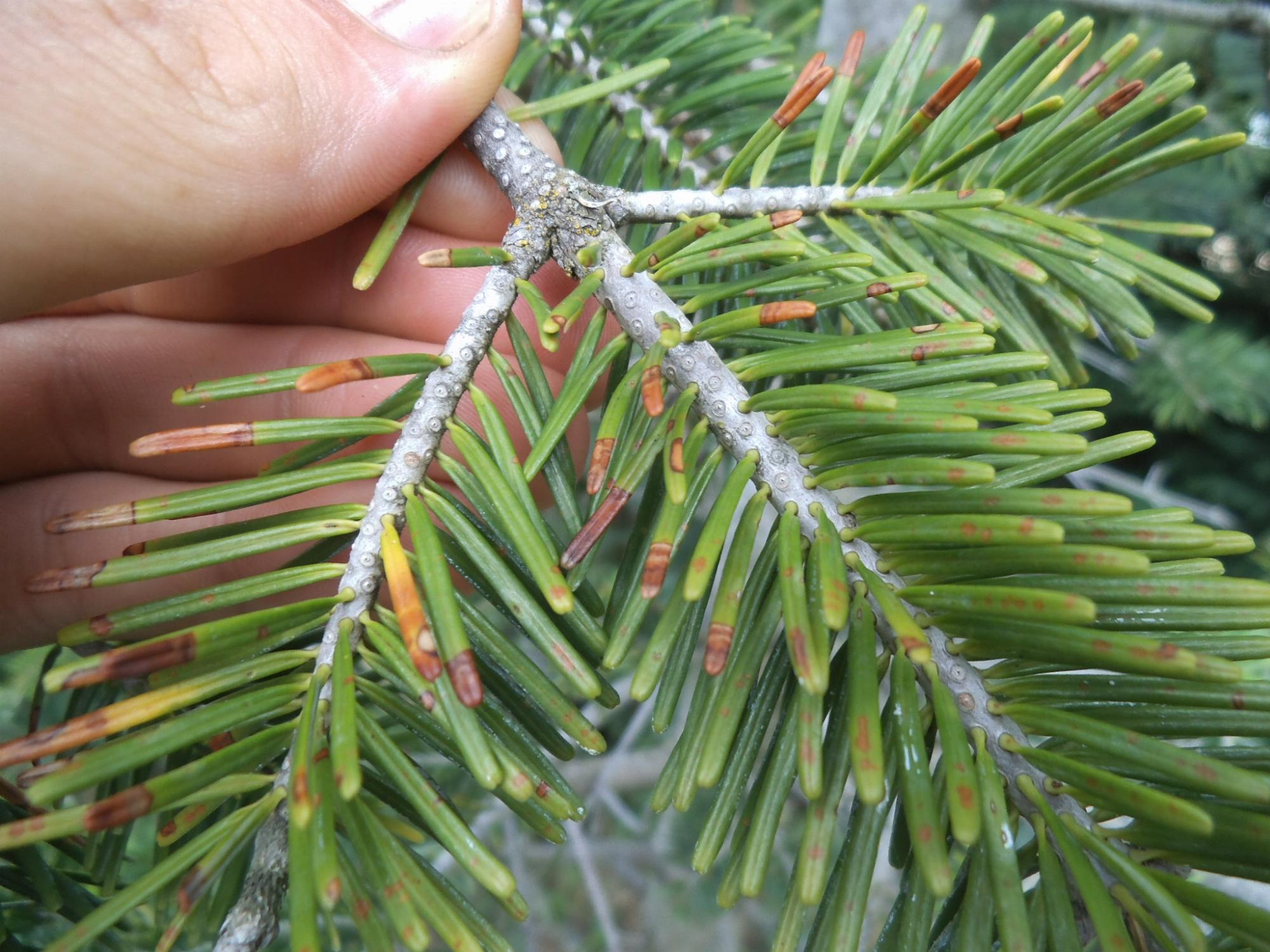 Javaslatom: tavasszal a világosabb tűlevelek megjelenésekor - ilyenkor az életfolyamatok újra indulnak - célszerű volna permetezni tavasszal: Score-250EC vagy Alpha Solo-+Mospilan+ Keserűsó. A fa mérete csak az alsó részek kezelésére alkalmas. A permetlébe tapadásfokozót is kell tenni - Nonit vagy hasonló. A kezelést két héten belül meg kell ismételni. A Mospilan a néhány hajtáson felfedezhető gyapjas pajzstetű ellen hatásos.