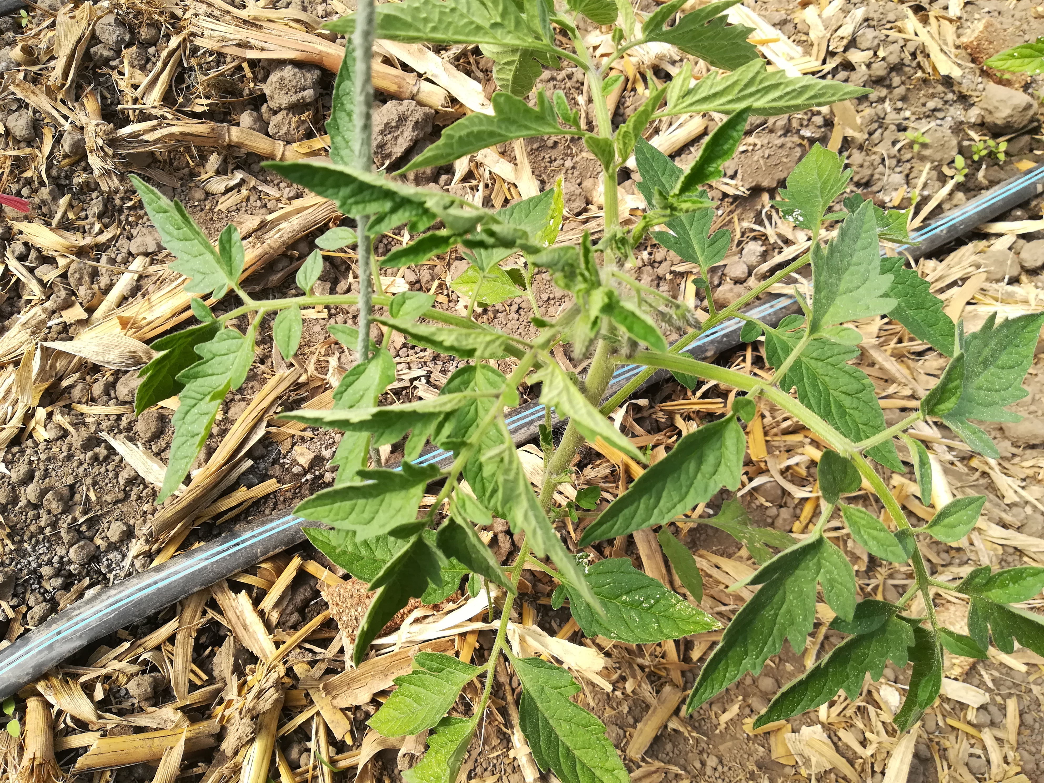 A paradicsom növények egészségesek, sem betegség sem kártevő tünete nem látható. A levelek tekeredése a változó hőmérséklet vagy egyéb külső tényező hatására következik be.