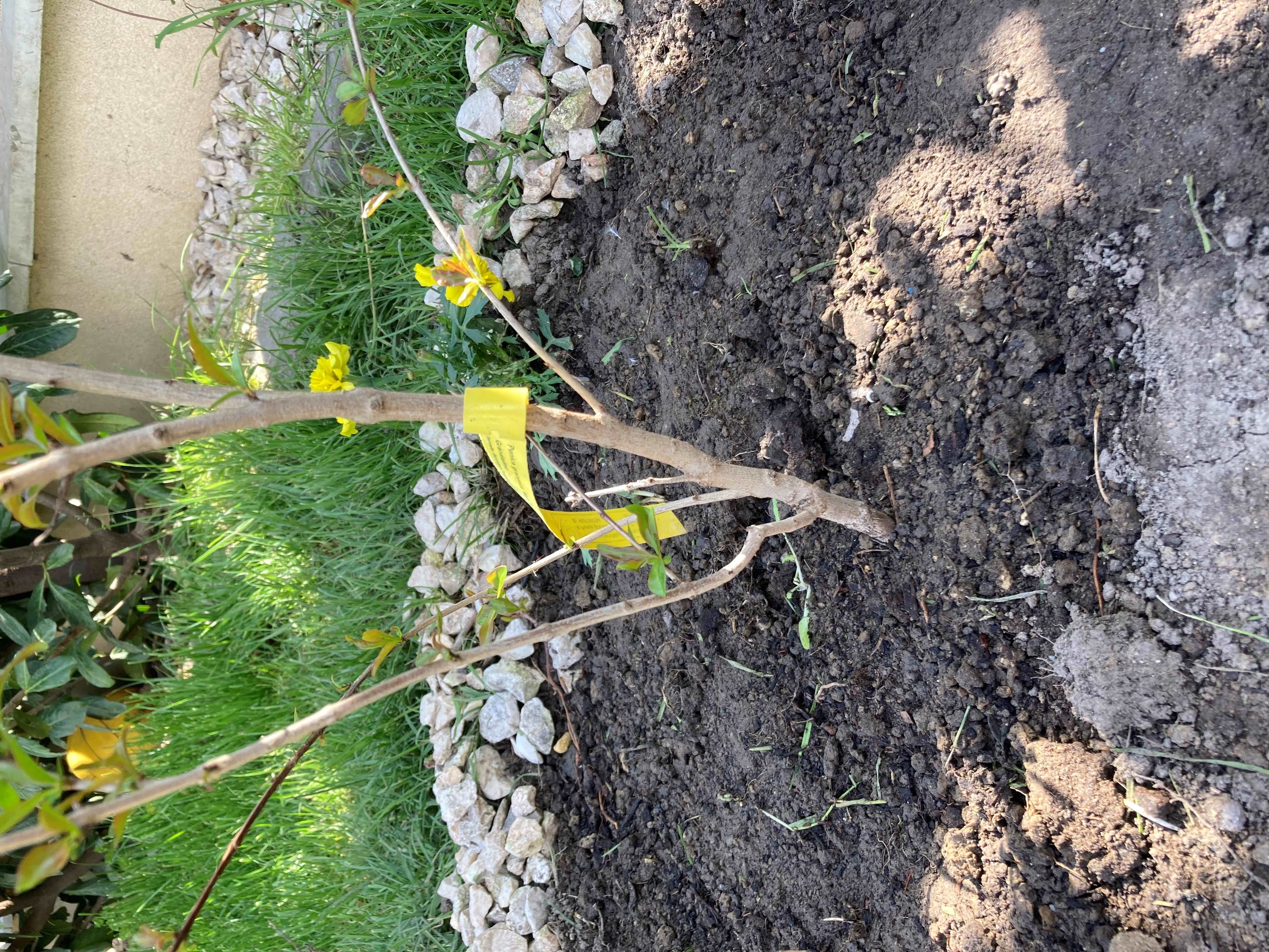 Semmiképpen nem javaslom, hogy letörje, inkább metszőollóval metssze le az oldalvesszőket. A legegyenesebb, legvastagabb vesszőt hagyja meg. Javaslom, hogy az egyenes törzs nevelése érdekében karózza meg (3x3 cm átmérőjű paradicsomkaróval vagy bambuszrúddal) a fácskát, több helyen lazán a karóhoz kötve rugalmas szalaggal.