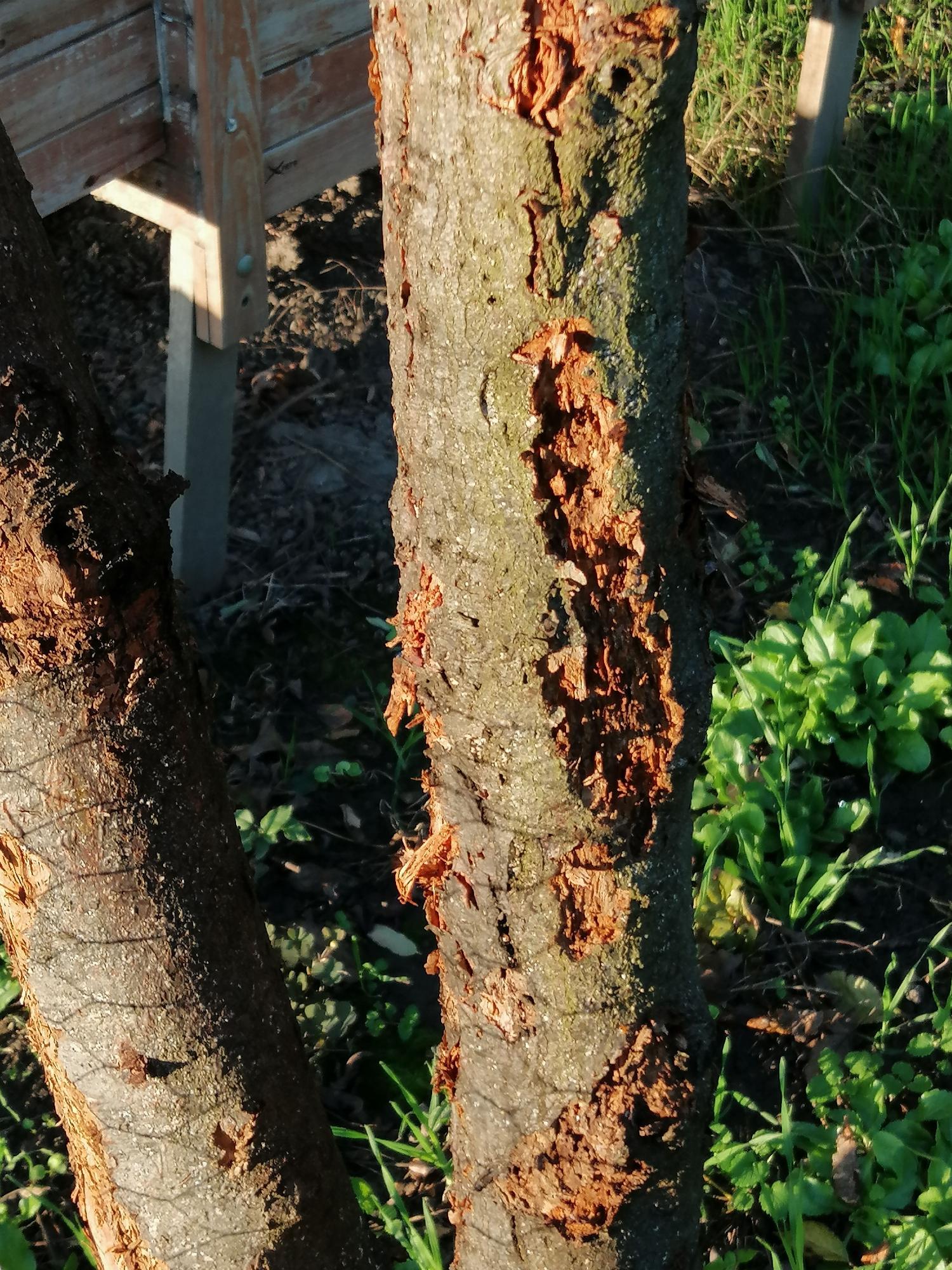 A kéregleválás kb. egy-másfél hónap alatt történt ismeretlen okból. A fa mellett kéregdarabok nem voltak fellehetők. Nagytestű állat a belterületi lakóingatlan területére nem tud behatolni. magas vékony ágak is ilyen állapotban vannak.