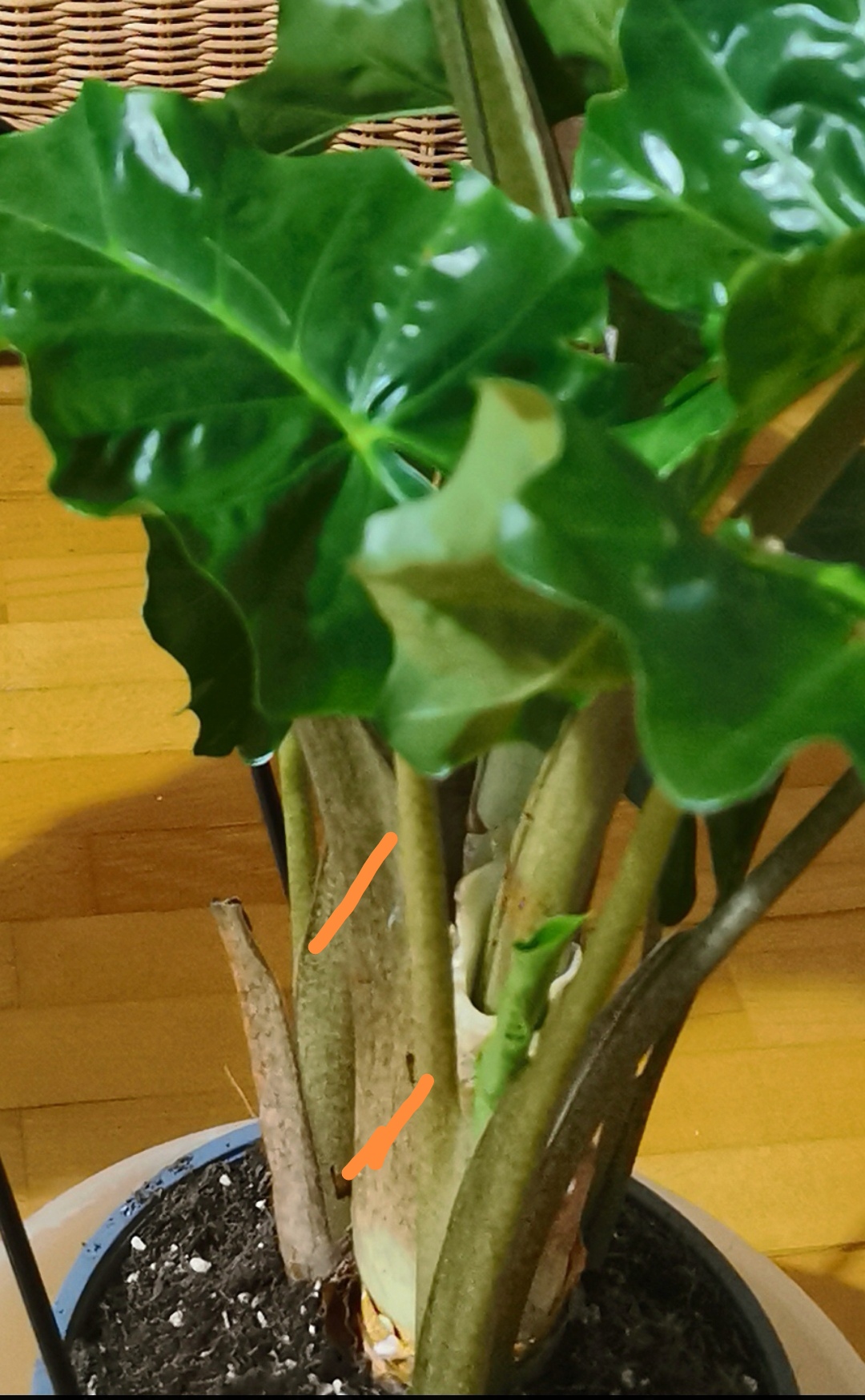 Tanácsot szeretnék kérni, pár hete vettem 1 alokázia protodorat, megerkezesee után 3 nappal 2 levele is elkezdett sárgulni es leesett, azt hittem csak a postázás, az utazás nem volt jó neki. Jöttek uj kis levelei. Viszont a megmarad 2 nagy levele közül az egyik szára kezd egyre puhább lenni es alig bírja a levelet. Nem tudom hogy ez a szár puhulás mitől van. Sárgával jelöltem a puha szárát. A levele is kezd fakulni. Tanácsot szeretnék kérni hogy ez mitől lehet illetve mit kell csinálnim hogy jol érezze magát. Előre is köszönöm szépen a segítséget! Üdv Krisztina