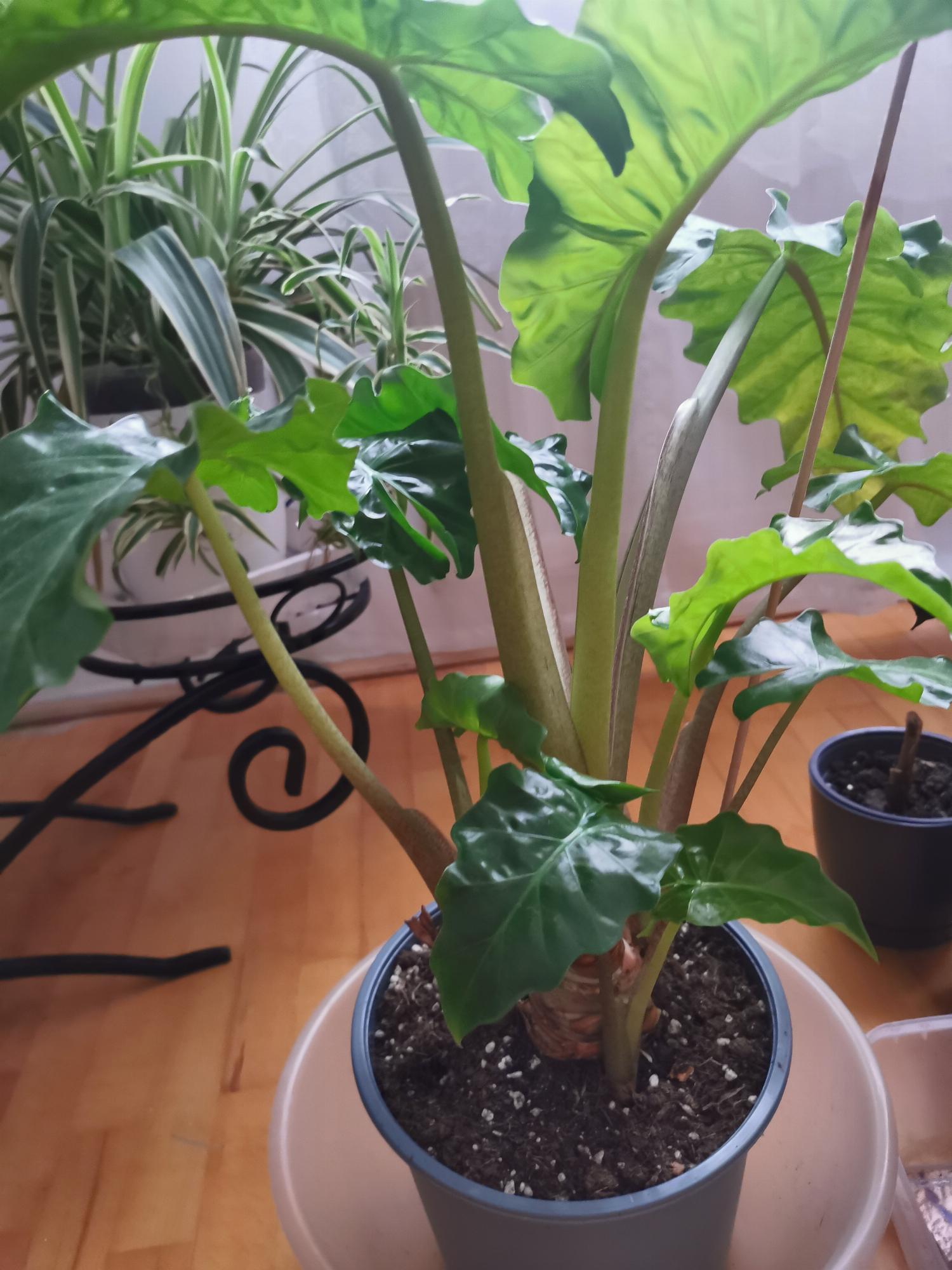 Az Alocasianál fontos tudni, hogy kissé savanyú, A típusú földben tenyészik jól. Minden jó, amit csinál. A növénnyel nincs semmi baj. Túlöntözni nyáron sem szabad.