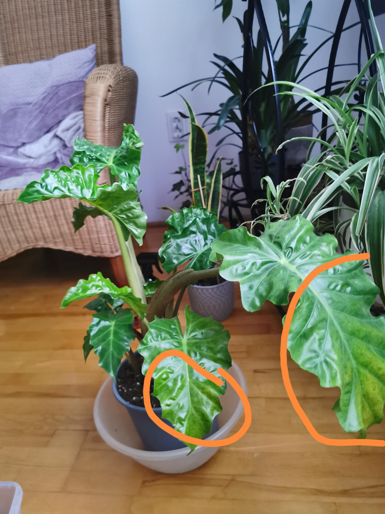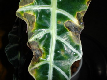 Mitől lehet ilyen foltos a levele az Alocasianak?