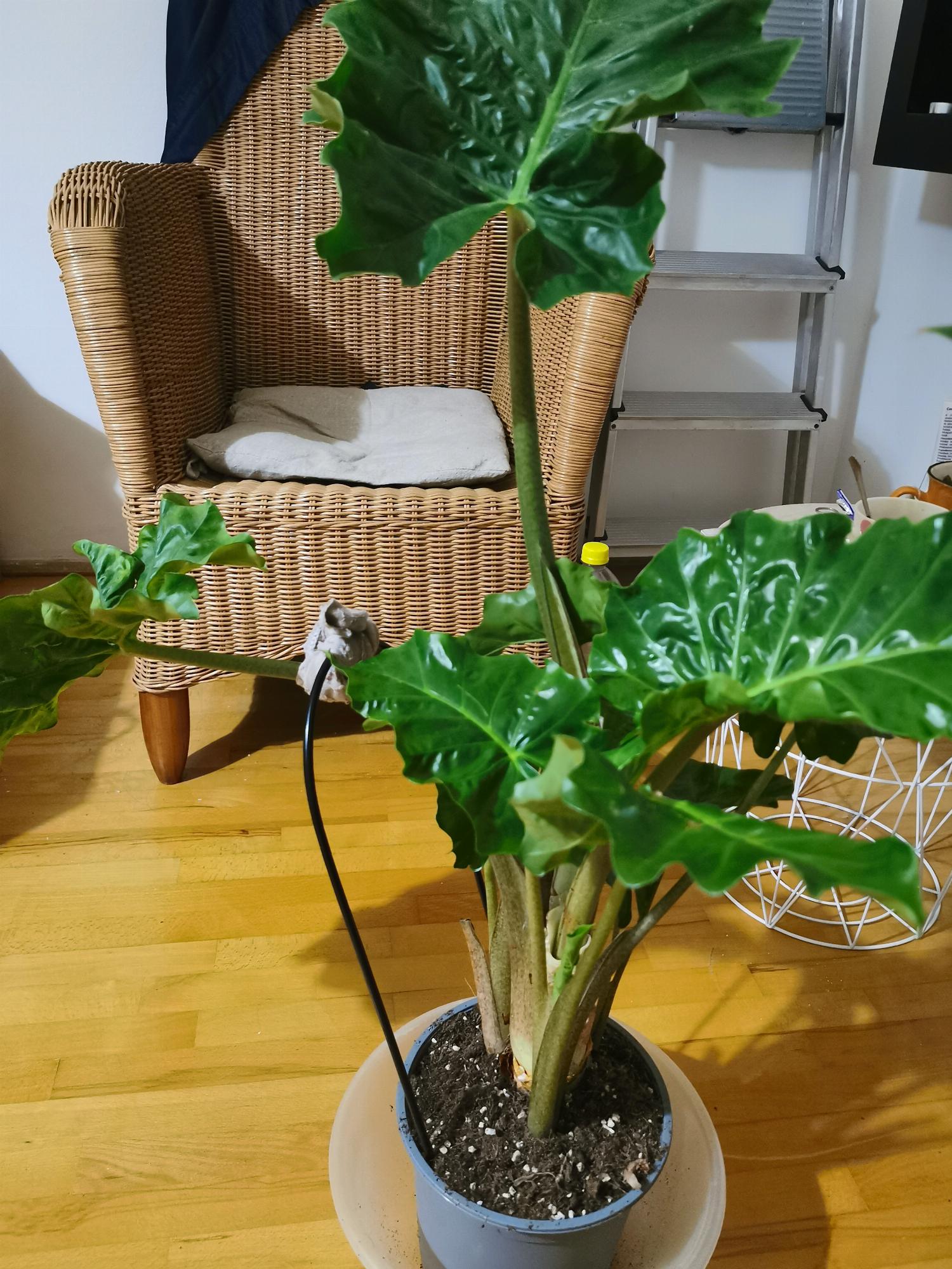 Van egy Alocasia macrorrhiza-m.És mindíg egyre kisebb leveleke hoz ki.félárnyékban van, 2 hetente tápoldatozom, hetente locsolom, kavicságyon an a pára miatt, álltalános virágföldben.3 levelénél soha nem tart meg többet.