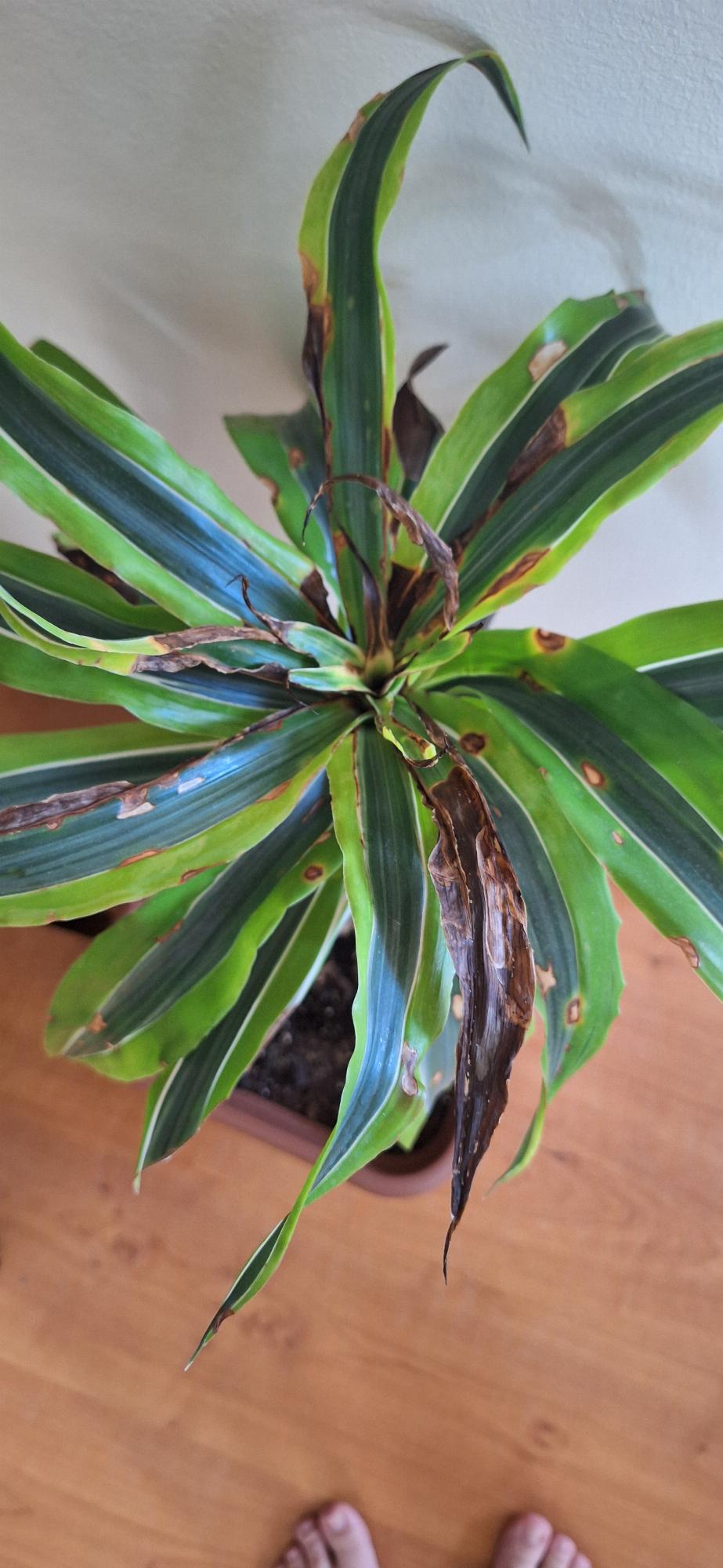 Meg örököltem a képen látható sárkányfát, viszont észre vettem, hogy nagyon lefelé konyulnak a levelei, illetve a képeken látható elváltozásokat fedeztem fel rajta. Nagyon szeretném megmenteni, esetleg kérhetnek tanácsot, hogy mivel gyógyíthatnám meg?