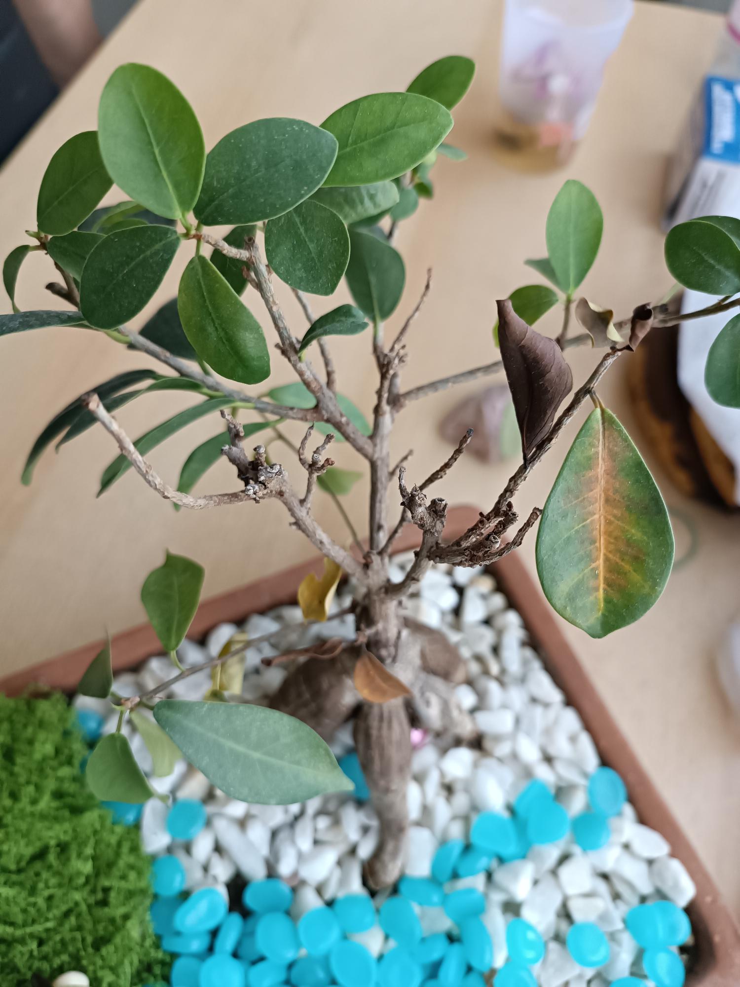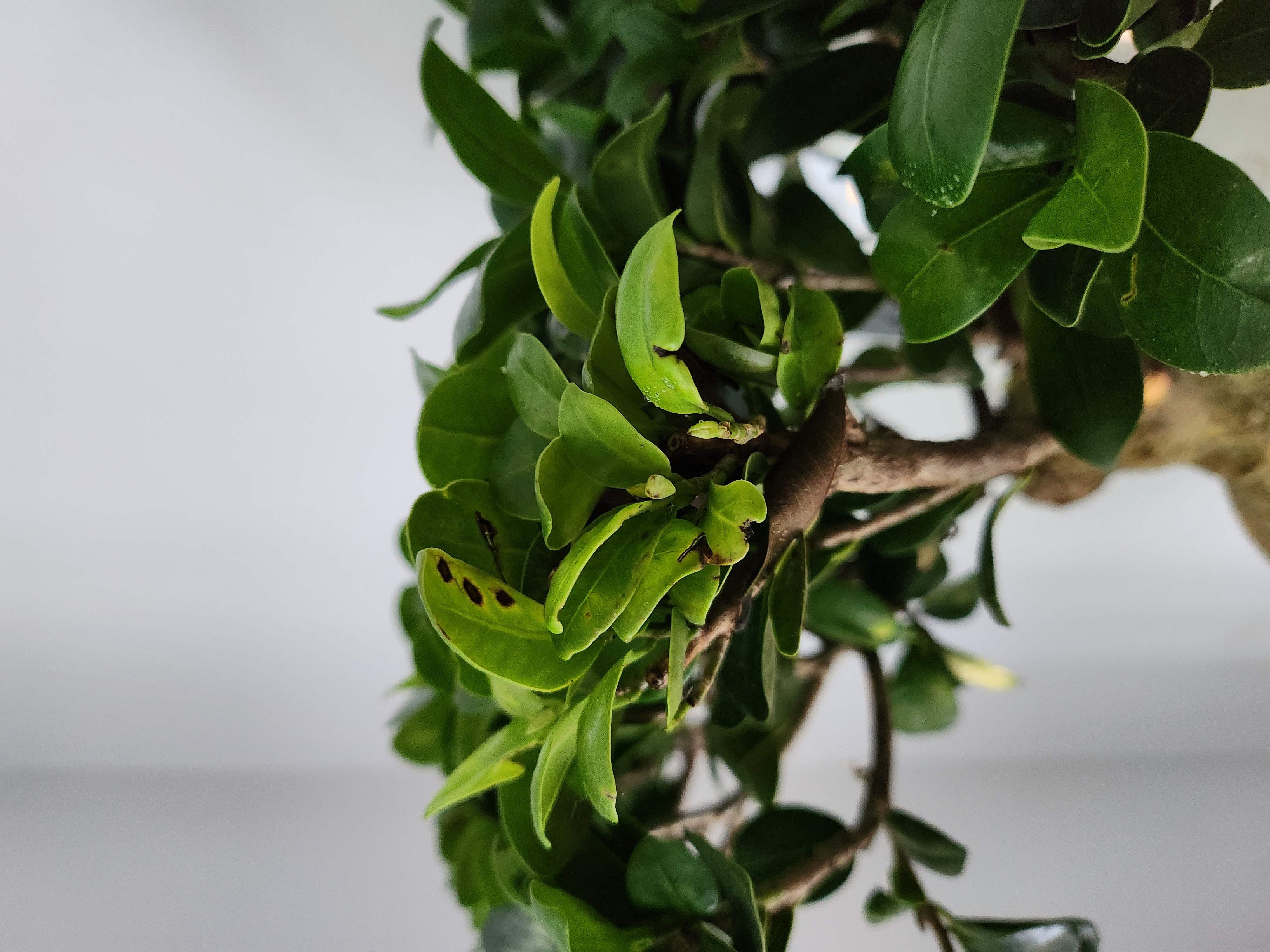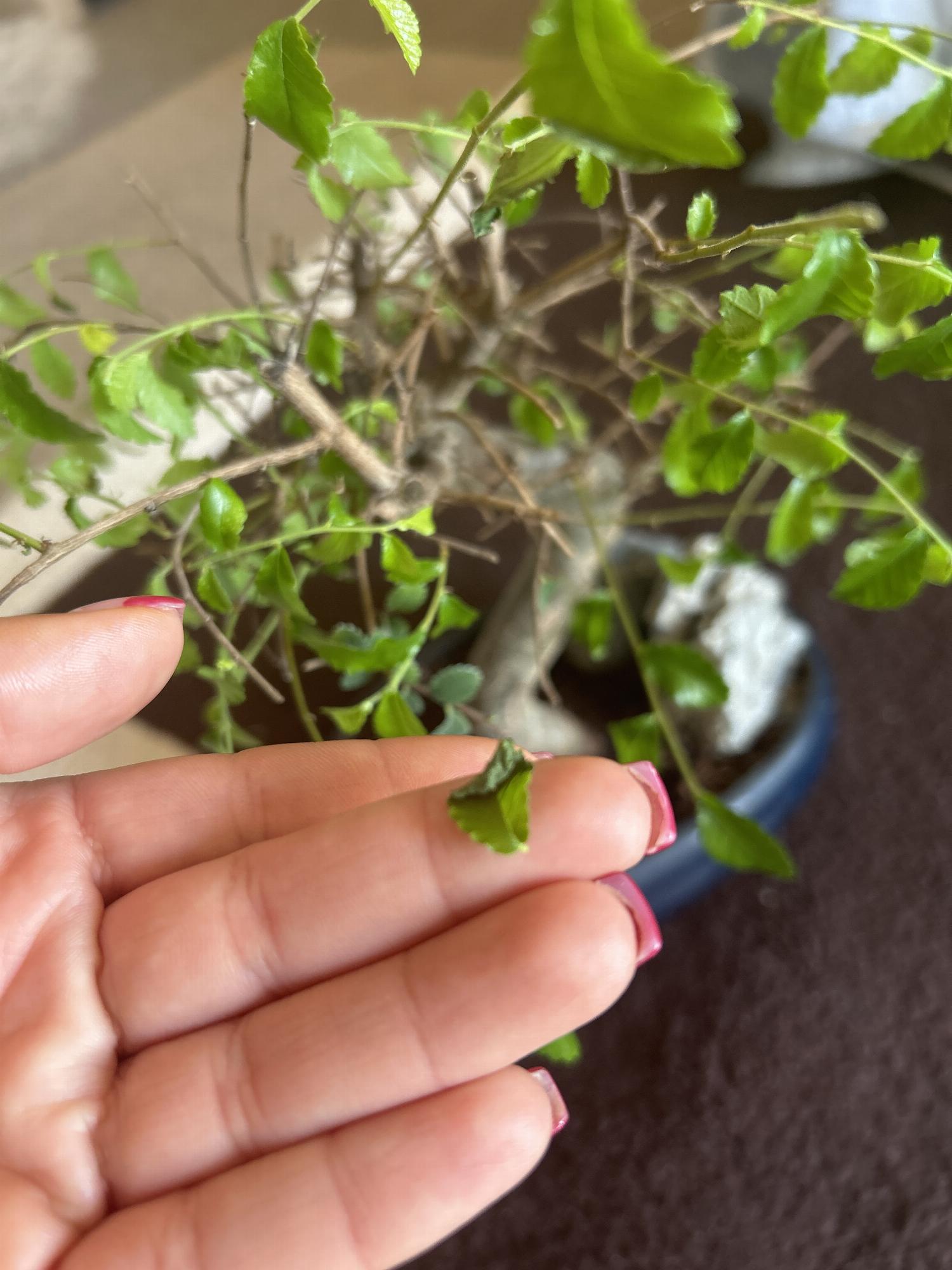 A bonsai-ommal kapcsolatban szeretnék segítséget kérni Önöktől. Először szinte teljesen megkopaszodott, valószínűleg nyáron túlöntözéstől, utána a problémát orvosolva nagyon sok új levelet kezdett hozni, de azóta több levél bebarnul majd elszárad/leesik és nem akar rendesen belombosodni/megerősödni a növény. Nagyon óvatosan locsoljuk heti 1x, fényt kap bőven, hatalmas ablak előtt lakik radiátortól messzebb (min. egy méter). A bonsai tavasszal lett átültetve bonsai földbe (utána még hónapokig nagyon szépen fejlődött).