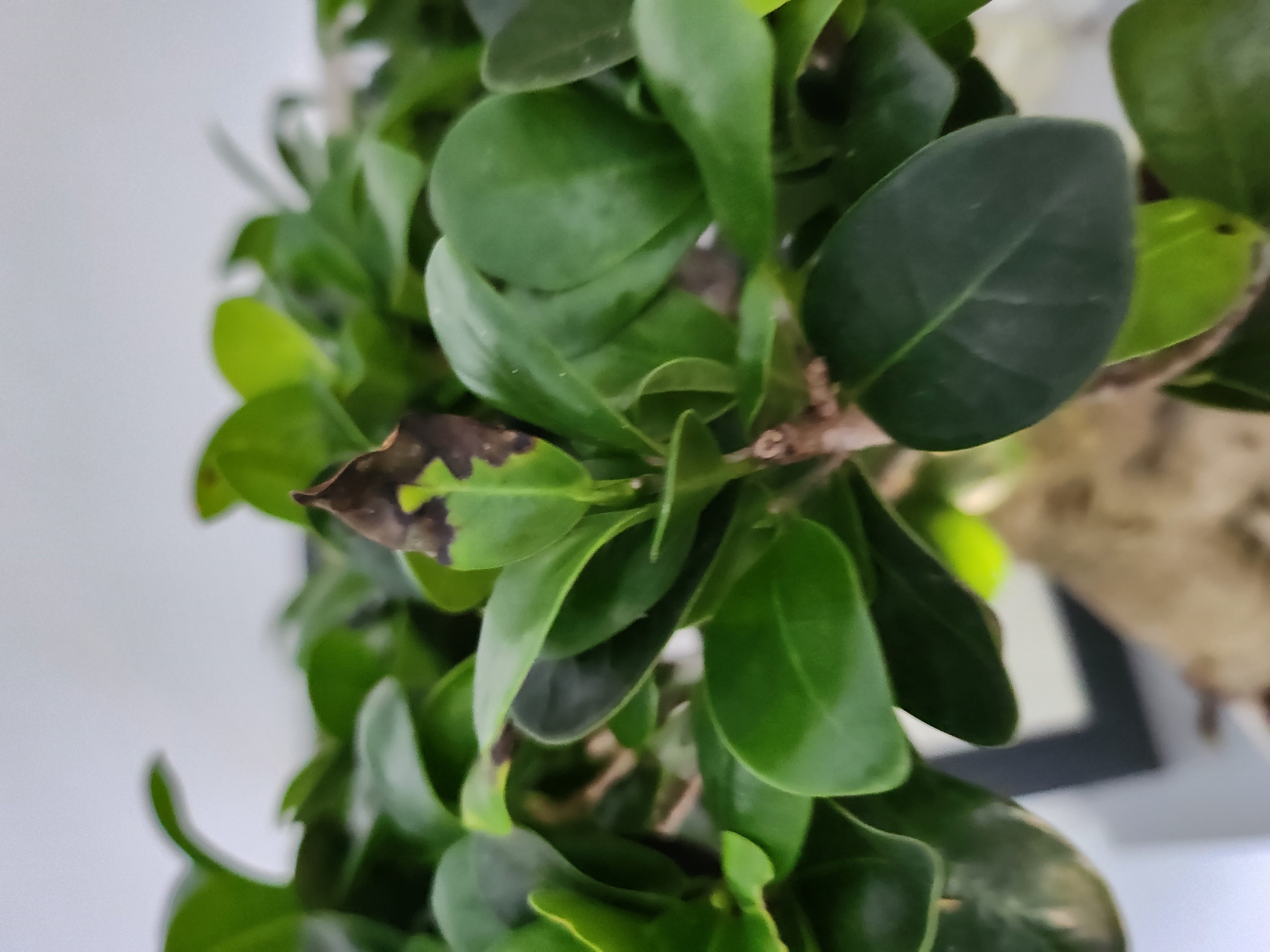 Kedves Erika! Valószínűleg a helyváltozás miatti treszzhatás. A Ficus ginseng szereti a kiegyensúlyozott körülményeket. Nem szereti a közvetlen napfényt, de az árnyékot sem, a túlöntözést és a kiszárdást sem. A tápanyegellátásról is gondoskodni kell. Káliumhiánynak látom a tünetet. A tünetes leveleket távolítsa el.