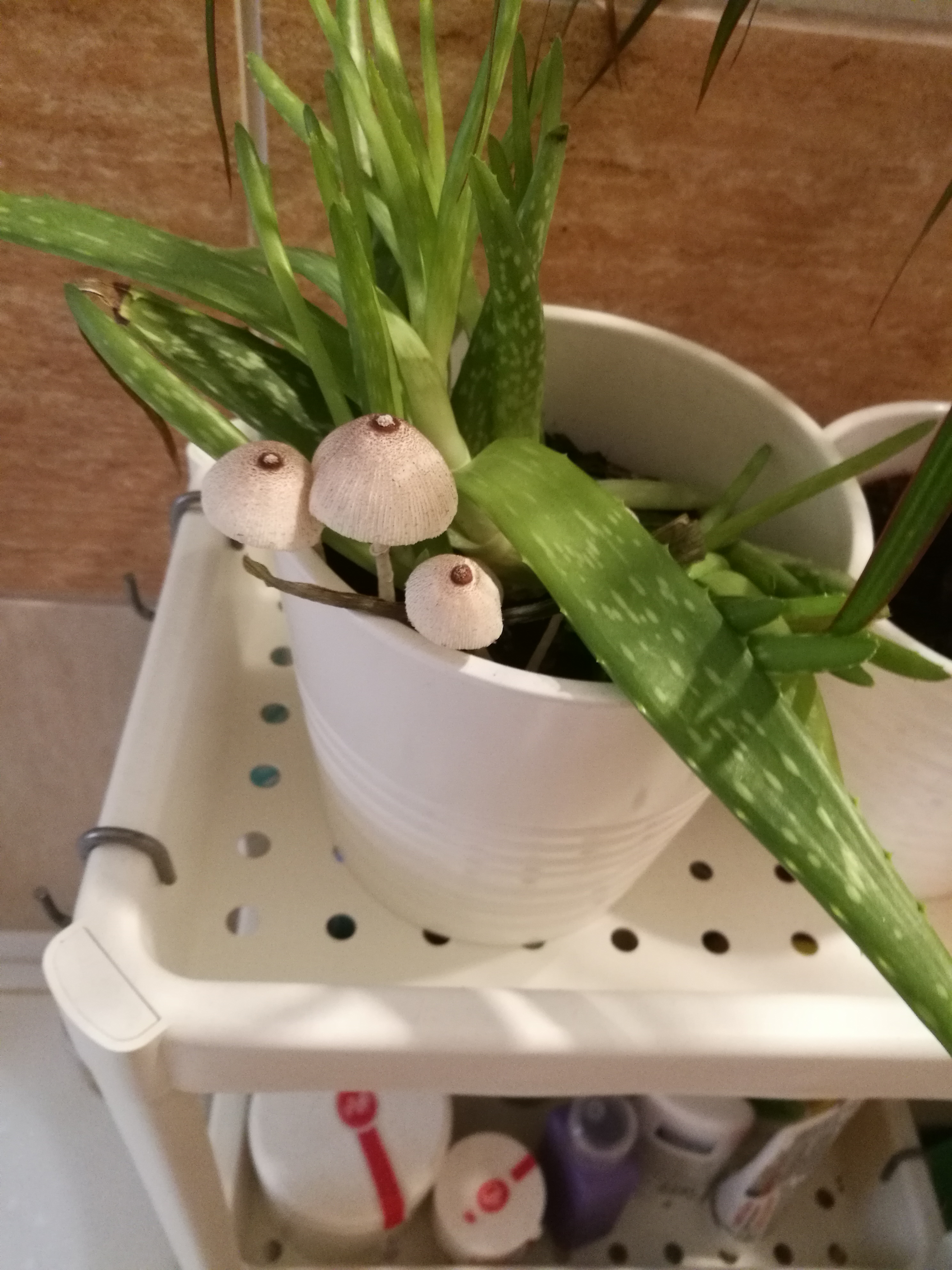 Kedves Katalin, ezek a gombák tűntek fel az aloe növényes caerepében. A fürdőszobában tartom mert csak itt van napközben elegendő fény. Nem közvetlen éri a Nap sugara. 1-2 hetente locsolom csapvízzel. Semmilyen növényvédőszert nem használok rá. Az Ikea-ban vettem kb. 7 hónapja. Honnan jöttek a gombák? Ártalmasak lehetnek az egészségre? Mit kezdjek velük? Előre is köszönöm szíves válaszát!