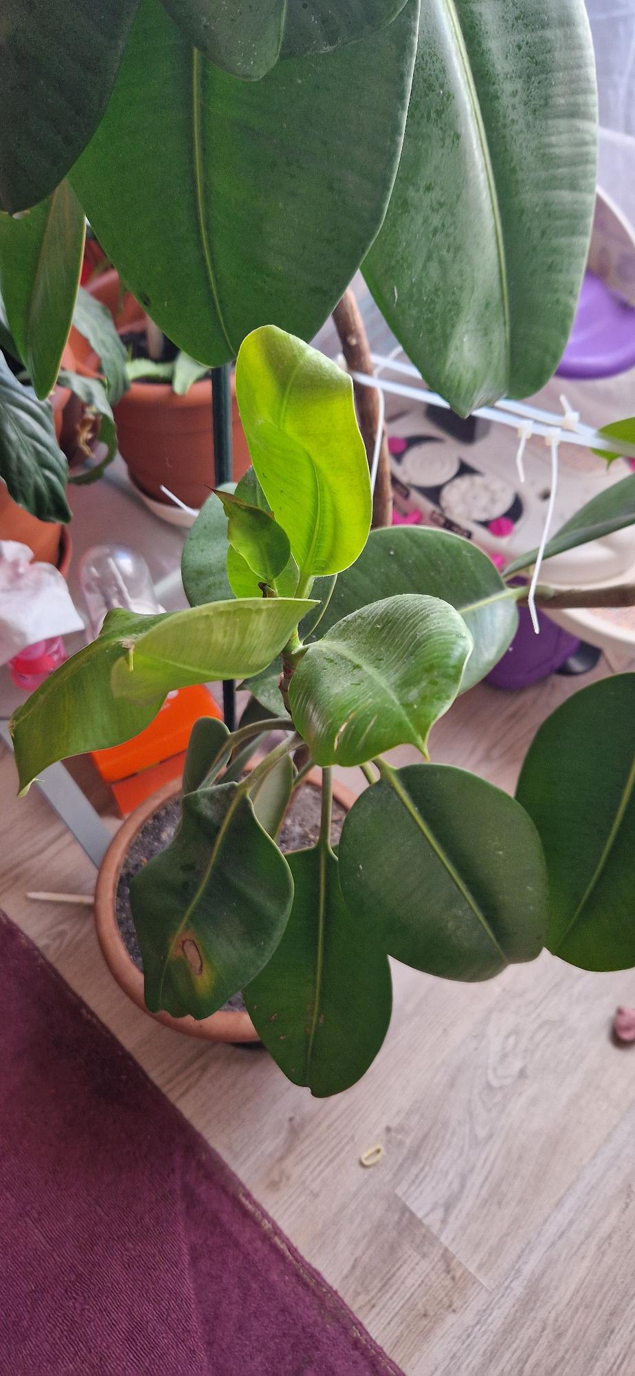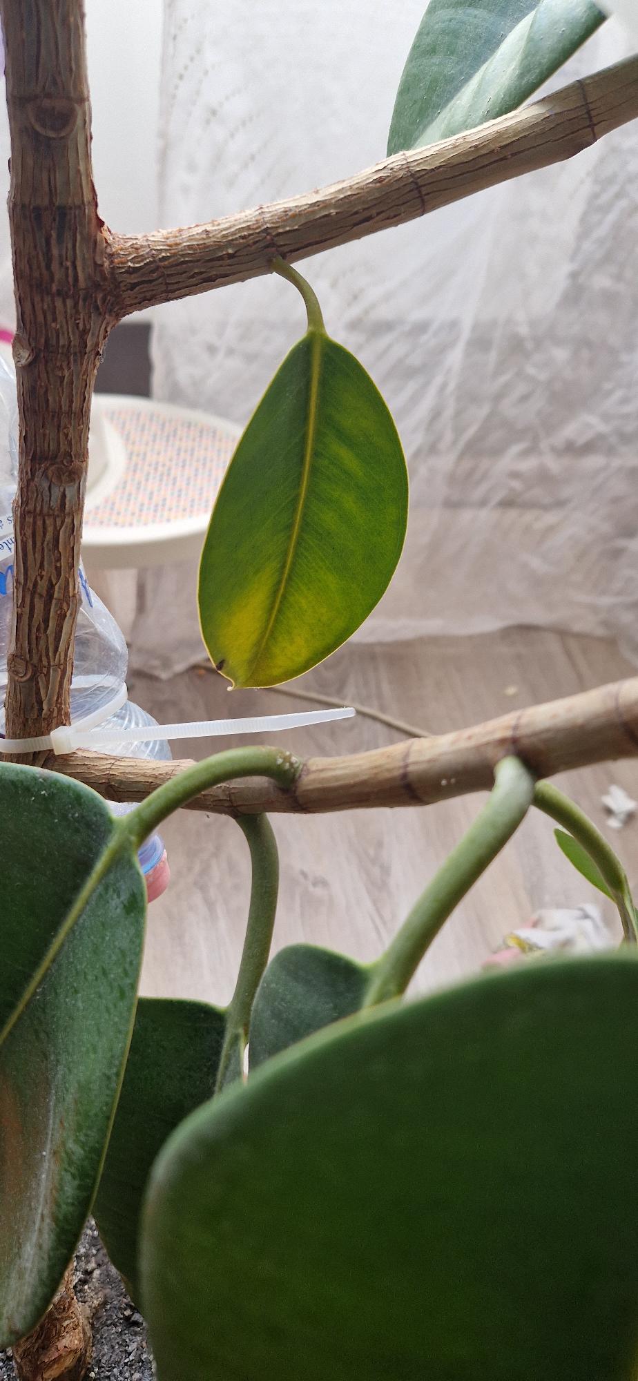 A fikusz minden hirtelen jött környzetebeli változásra érzékeny, arra is, ha áthelyezik a szoba egyik végéből a másikra. Télen az ablek mellett a hideg, illetve a fénymennyiség csökkenése, a fűtés miatti szárazabb levegő is okozhatja a levelek (levélszélek) barnulását. Az apró, fejletlen levél sárgulása nem probléma. Úgy látom, hogy egy mellékhajtáson fejlődő levelek halványabbak, úgy tűnik, hirtelen hajtottak ki és valószínű tápanyaghiányosak.
