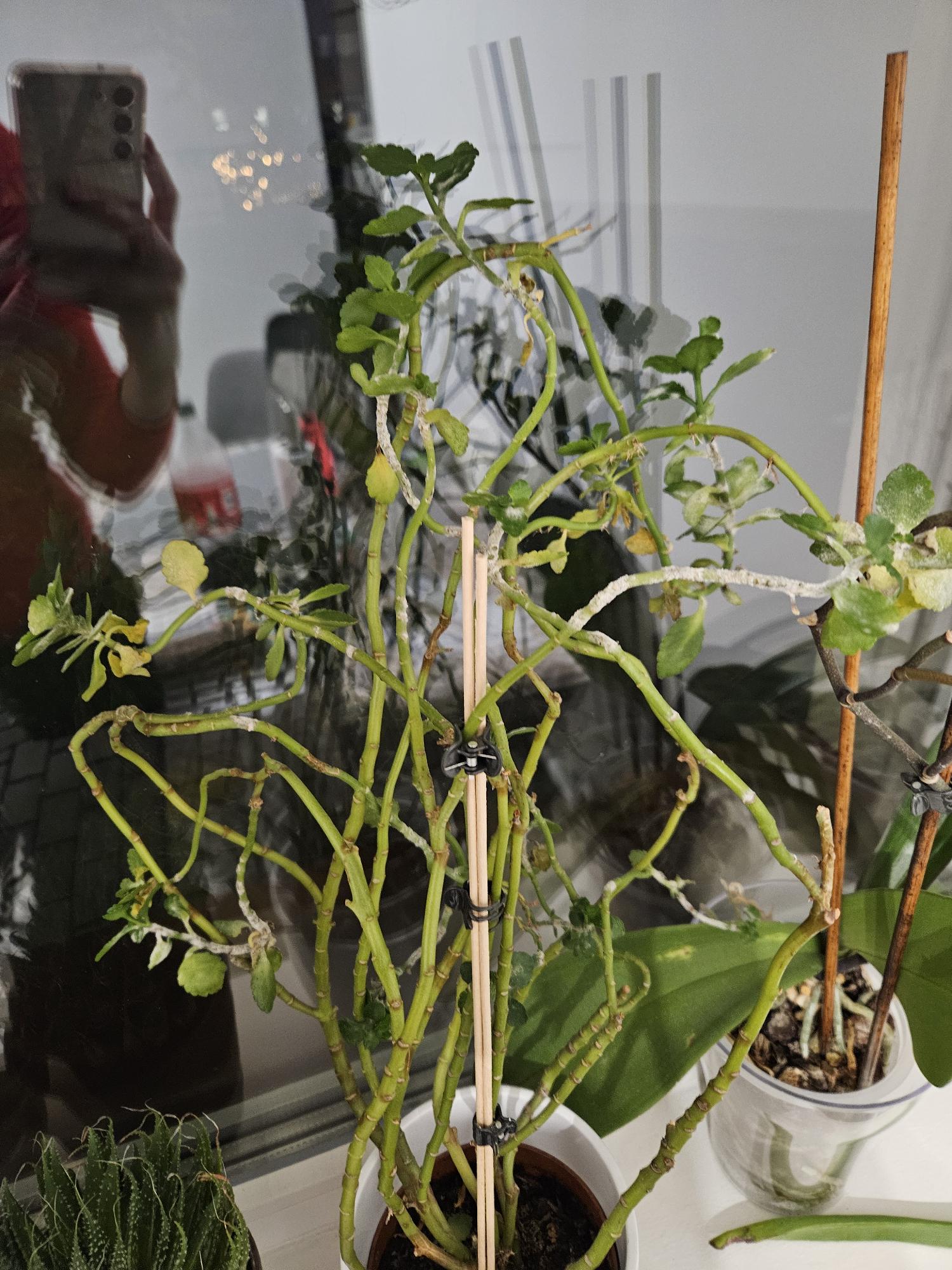 A felnyurgult Kalanchoe-t vágja vissza, és 20 fok alatti hűvös helyen tartsa, csekély öntözés mellett. A másik Kalanchoe tápanyaghiányos és/vagy túl van öntözve. Újravirágoztatni sötétítéssel lehet. A dracénát nem látom problémásnak, túlöntözés és száraz levegő, fényhiány miatt száradhatnak a levélvégek.
