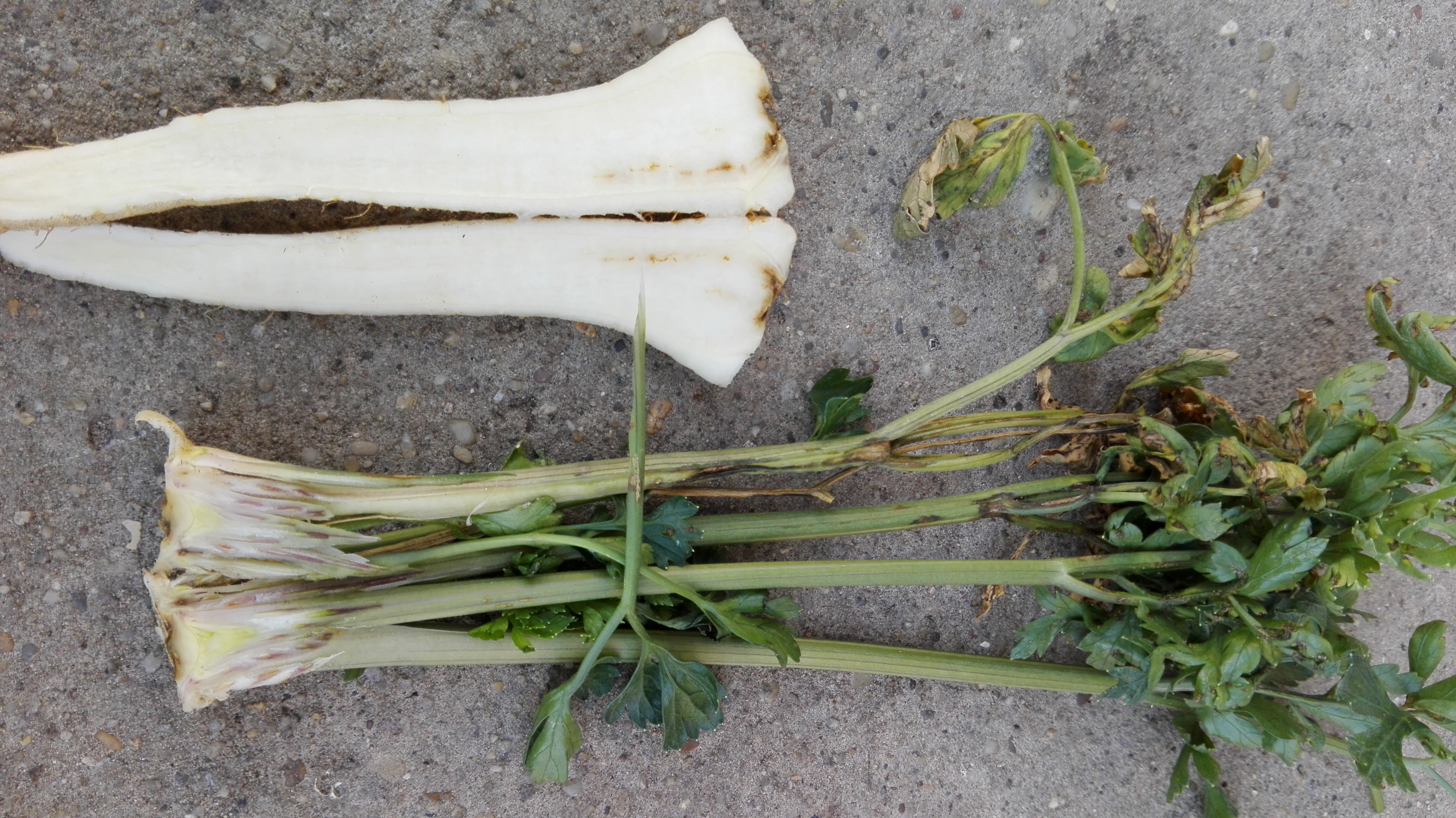 Petrezselyemnél a képen látható tünetek jelentkeztek. Előrehaladott állapotban a gyökertest közepe rothadni kezd.Kérdésem az lenne a képek alapján mi okozhatja a tüneteket? Borhiány vagy estelegesen kártevő lárvája ?? Segítségét előre is köszönöm