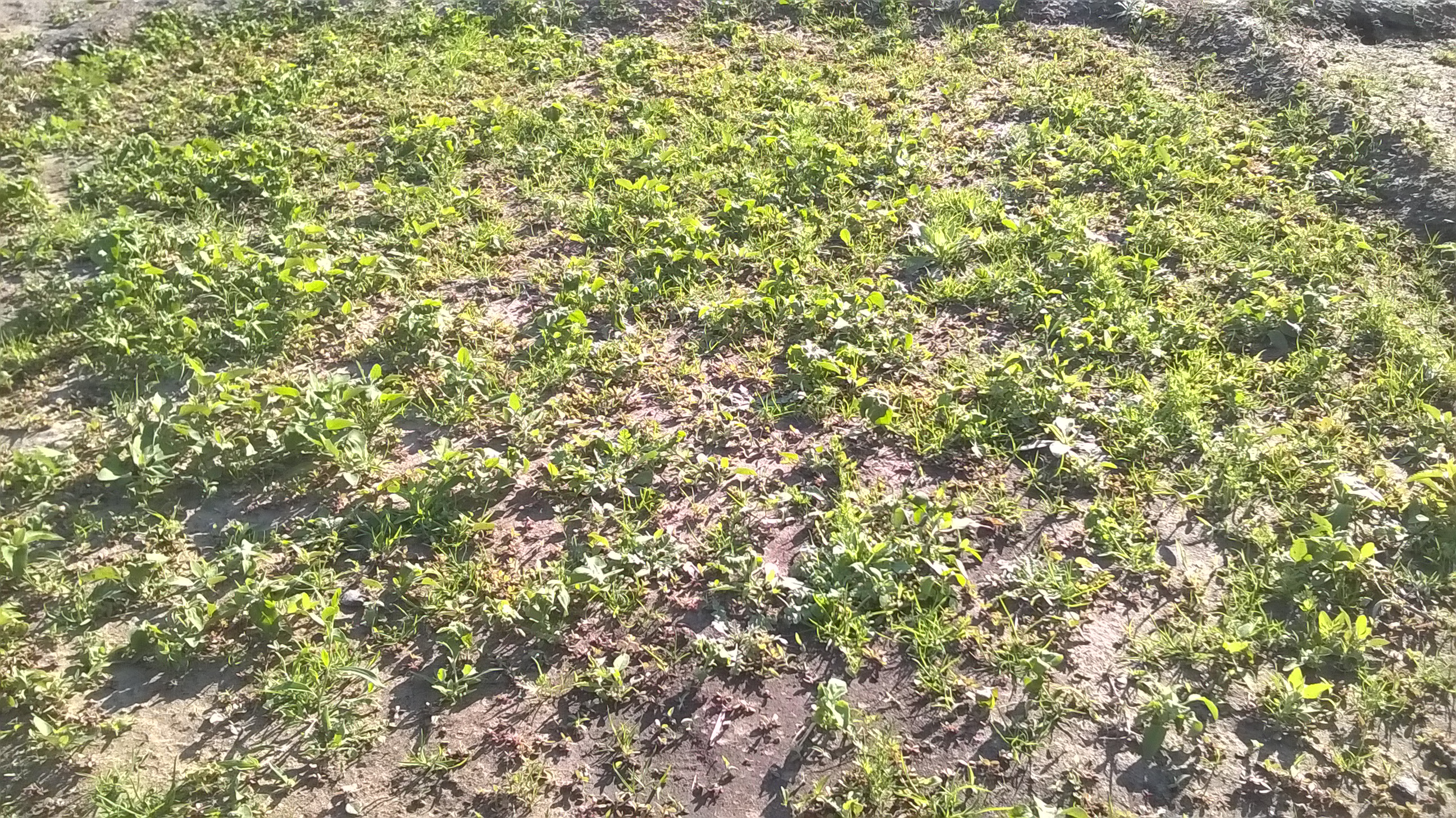 A hagyma 3-4 leveles állapotban van és tele van 1-2 leveles parlagfűvel.