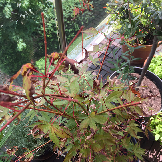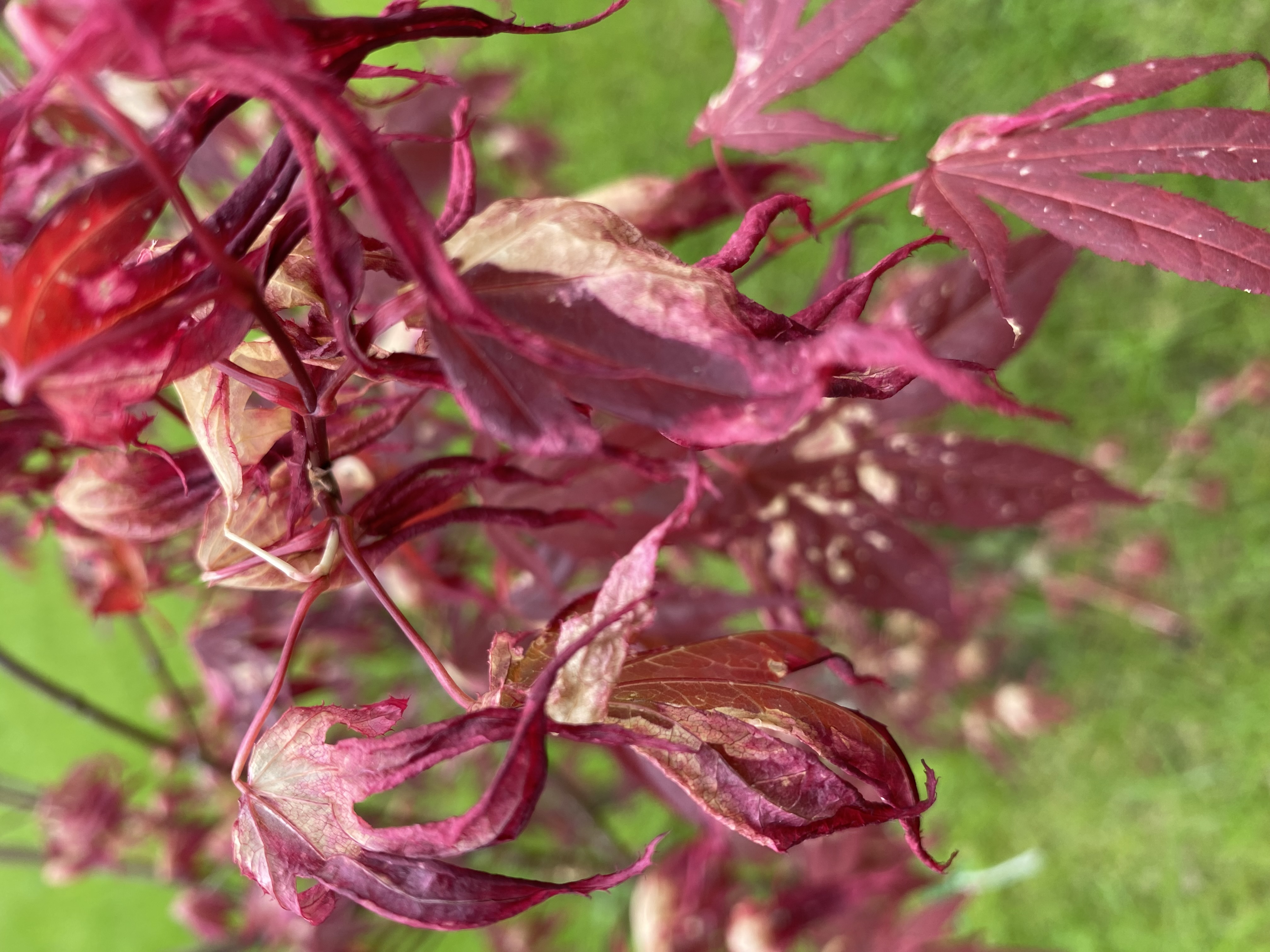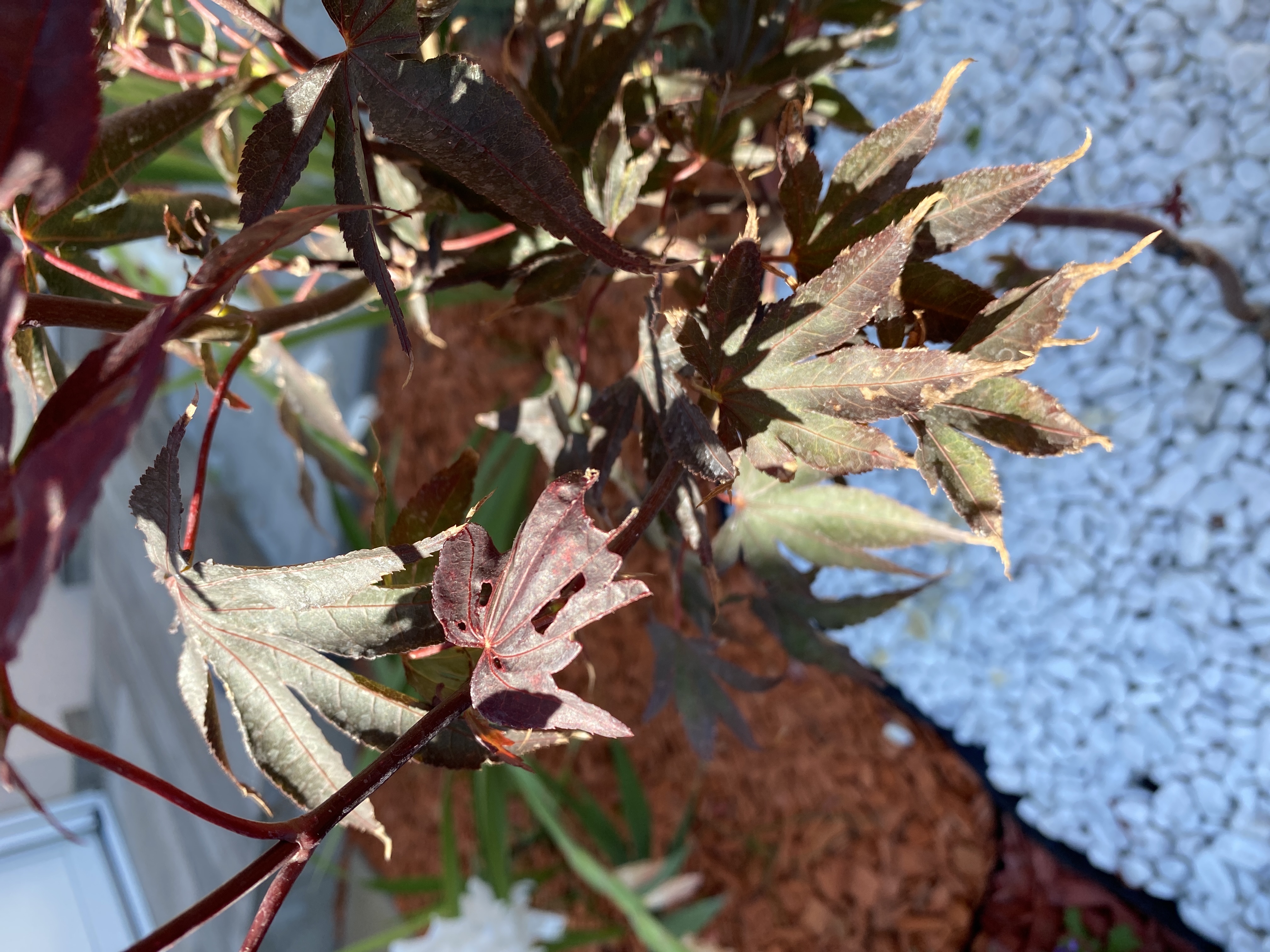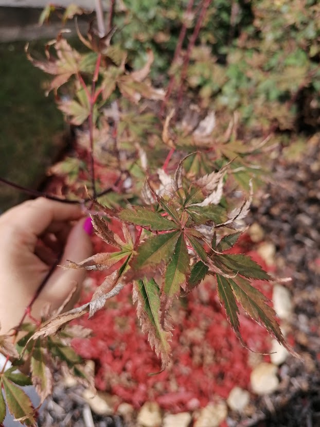 A japán juhar fám régi leveleinek elkezdtek elszáradni a szélei. Az újak pedig hiányosan és deformálódva fejlődnek ki. Mi lehet ennek az oka? Délelőtt éri a nap csak, 1 órától árnyékban van. Égési tüneteket ezek vagy tápanyag hiány?