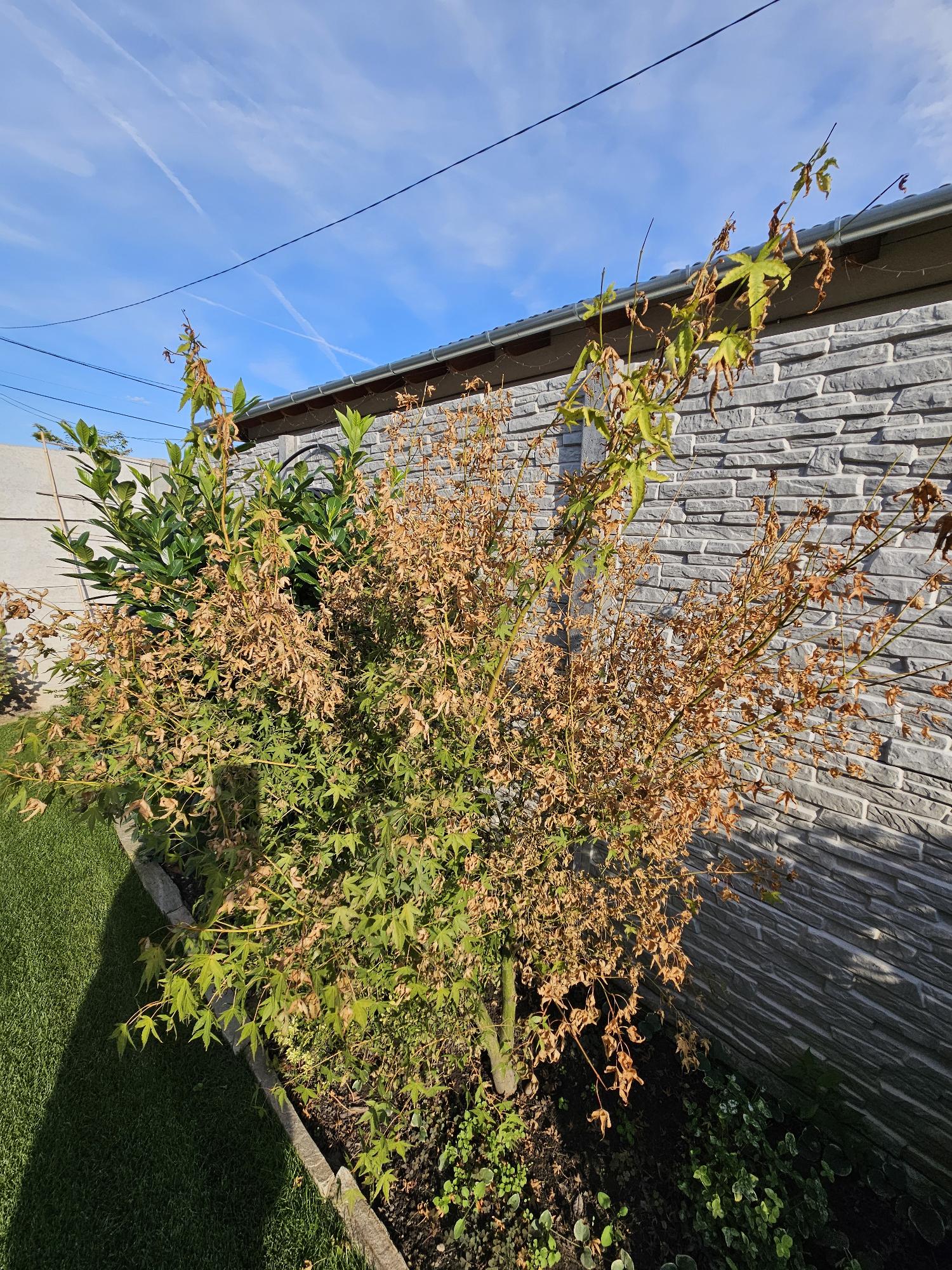 Jó napot kívánok, új házba költöztünk ahol a kertben él(t) egy japán juhar. Pár hónapja költöztünk, minden rendben volt a fácskával, de most így néz ki. Mit csináljak vele ? Semmi tapasztalatom
