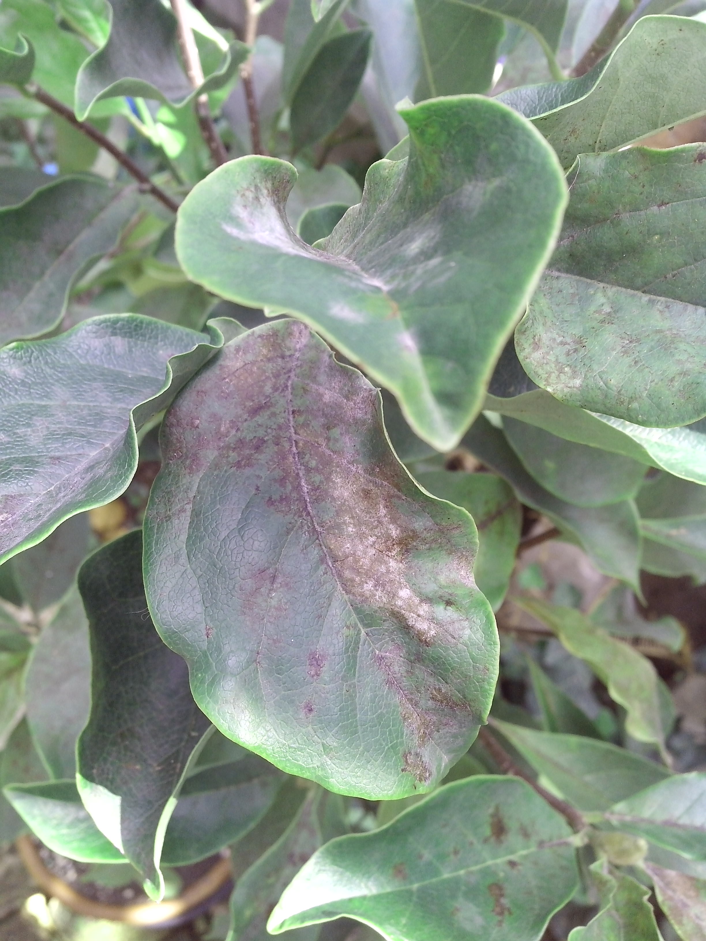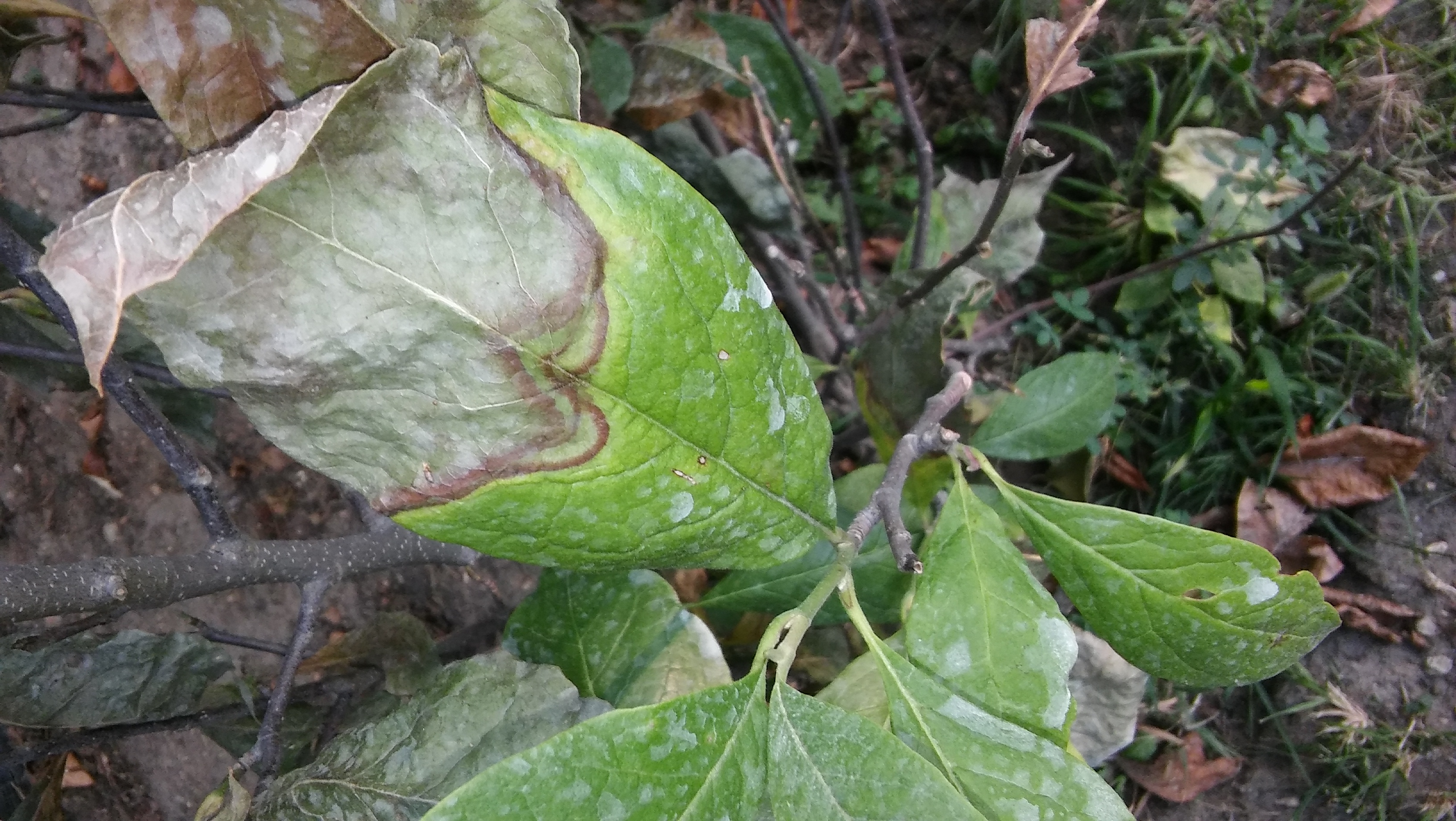 Én is lisztharmatra tippelek, de elküldtem a képet kórtanos kolléganőmnek. Felszívódó szerrel védekezzen. Pl. Topas. Nem árt ősszel a dísznövényeket is rezes (pl. Cuproxat) lemosó permetezésben részesíteni, főként a magnóliát, aminek fönnmarad a lombja télen is.