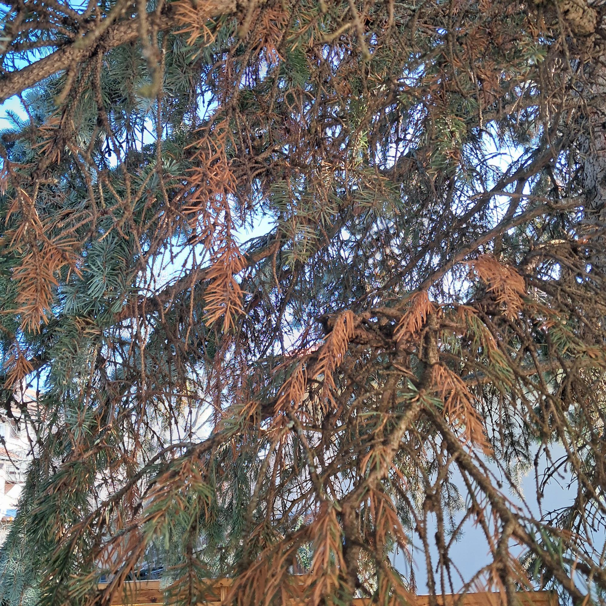 Egyszerre 5 fenyő lett beteg hirtelen ahogy a képeken látszik. Gyorsan alakult ki ez az állapot. A madárbirsről azért csatoltam képet, mert hasonlóan gyorsan ott is teljesen leszáradnak ágak, lehet egymást fertőzték, vagy ugyanaz a baj, hátha segítség. Mi lehet a probléma? Tudok valamit tenni?