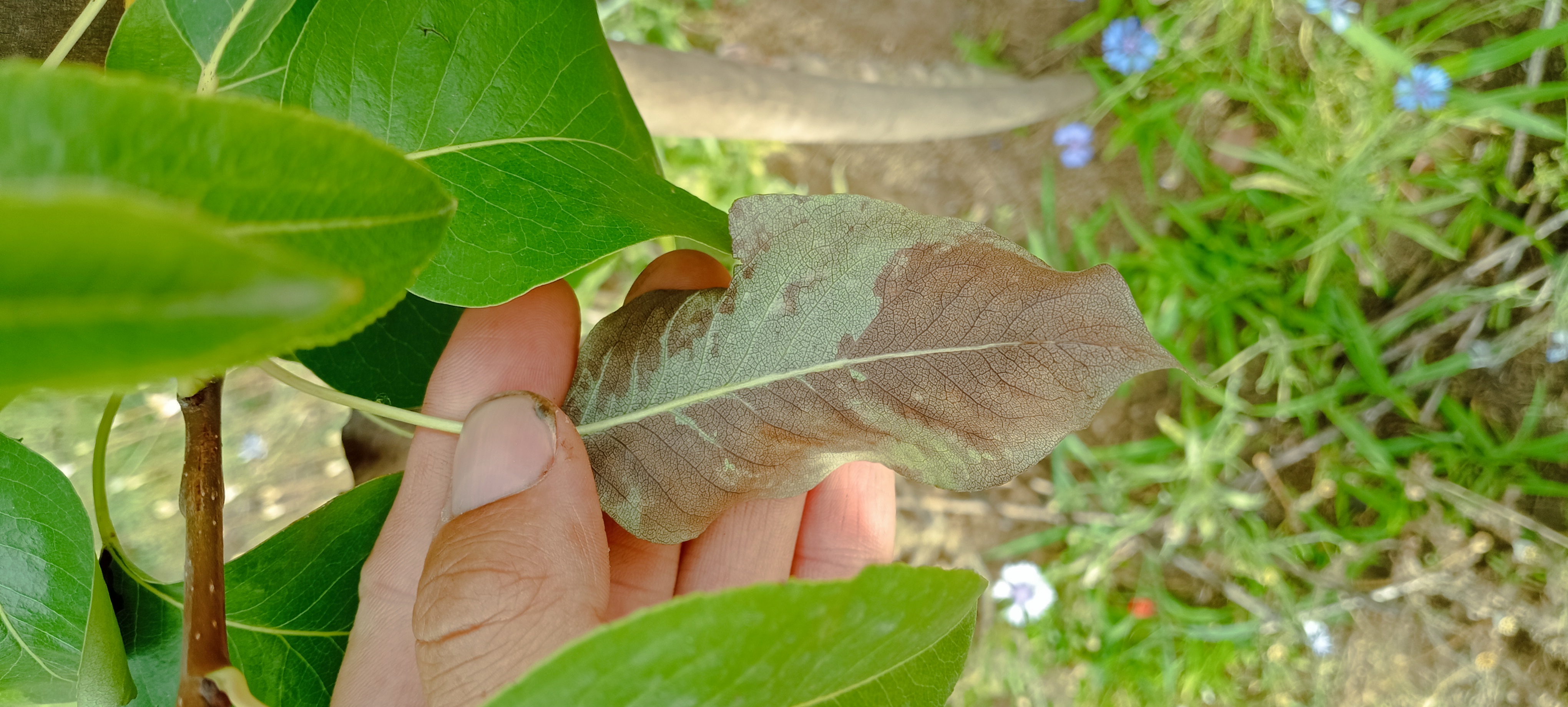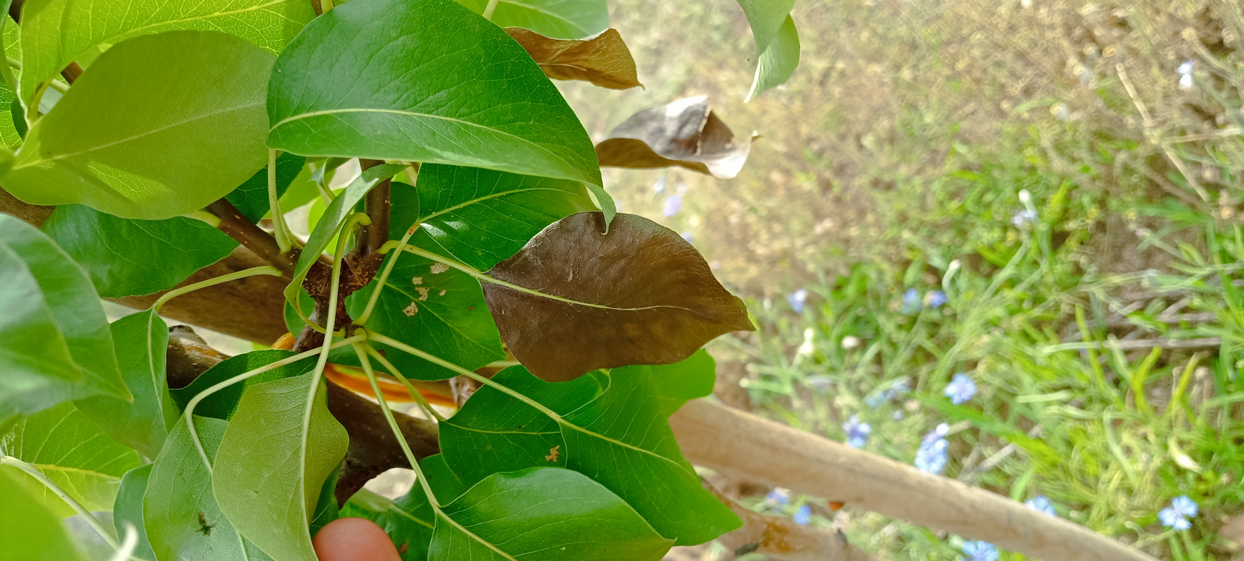 Fekete beszárazodásokat találok az egyik körtefám levelein.Mi lehet az oka , mivel kezeljem?