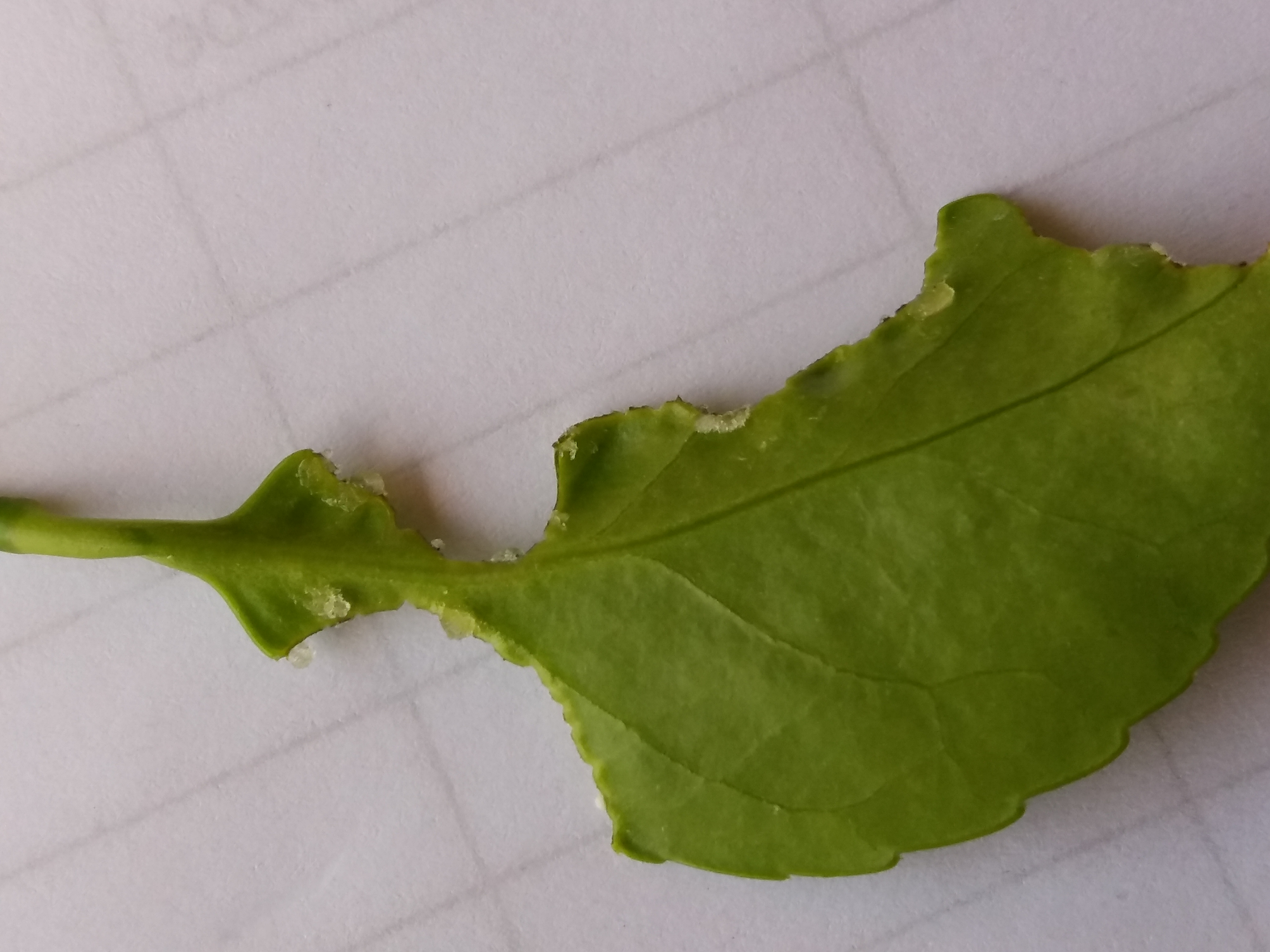 Teraszunkon nagy csrépben levő Japán cskerágóink leveleit valami rágja. Mellékelek néhány fotóót is. Az egyik cserje levél fonákján is találtunk apró petéket (?). Egyes levélrágásokonn fehér kristályszerű apró dolgokat is találtunk.