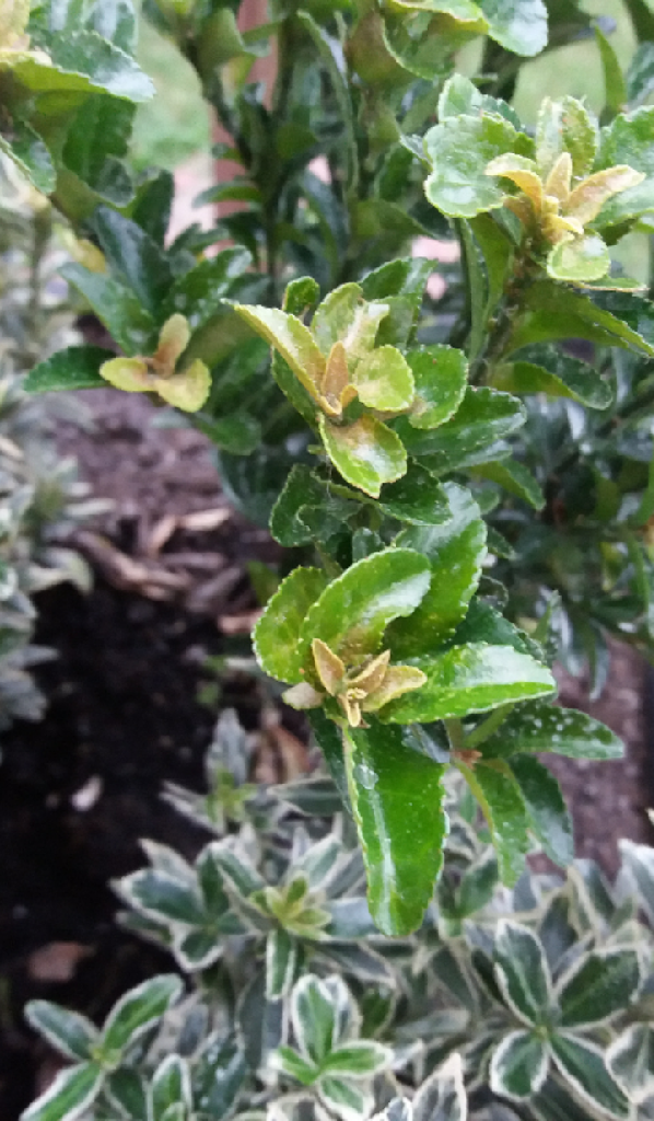 Tisztelt Szaktanácsadó! A fiatal buxus novenyem csúcsán az új levelek megbarnulnak, mintha kis pontszerű réteg lenne rajtuk. Mi lehet a gond? Köszönöm a választ. Kép mellékelve.