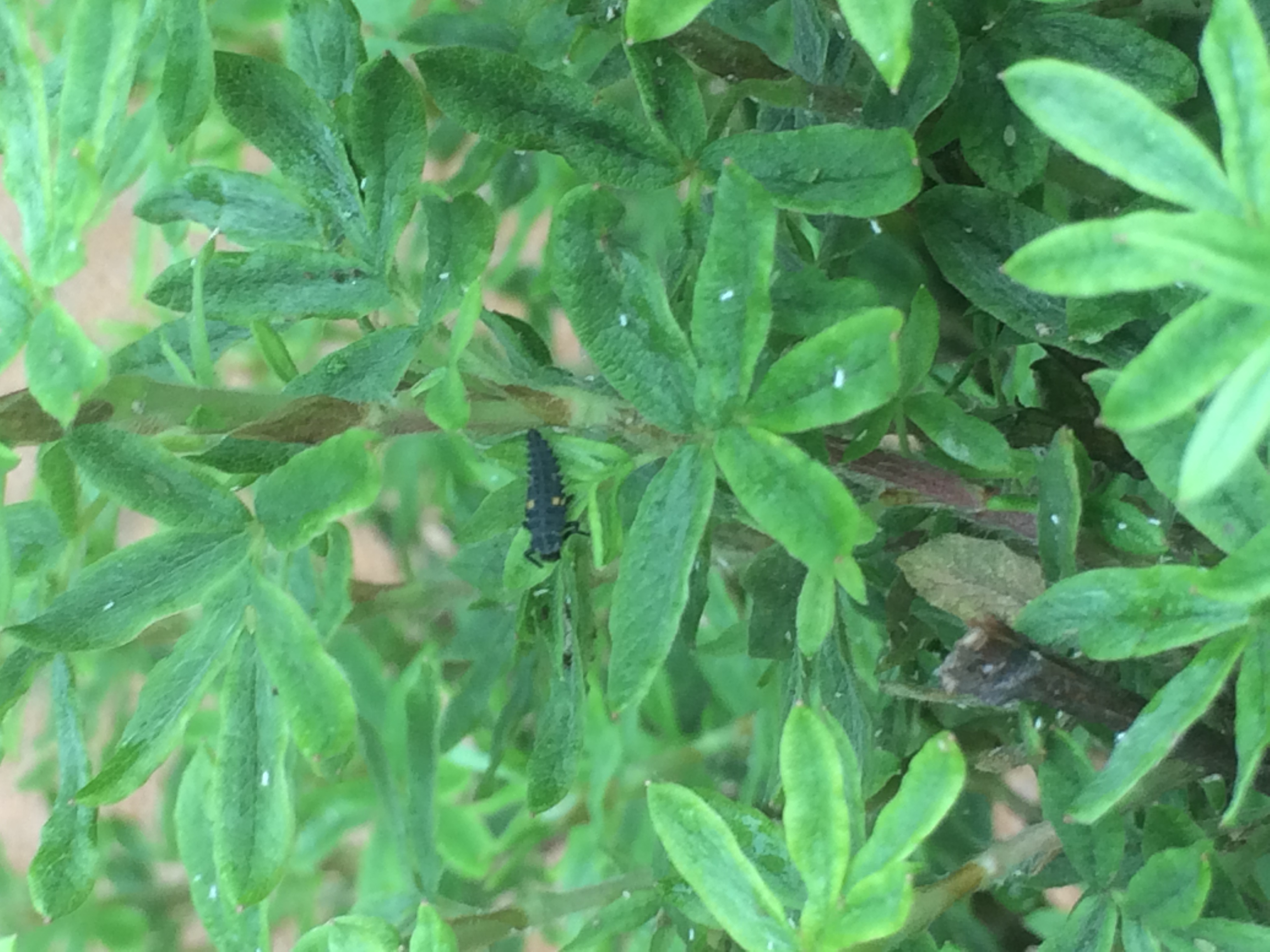 A sárga-fekete "bogarak" katicabogár-lárvák, amik a látható liszteskéket fogyasztják. Ennek örüljön. A vörös "kukacról" kérnék egy közeli éles képet.