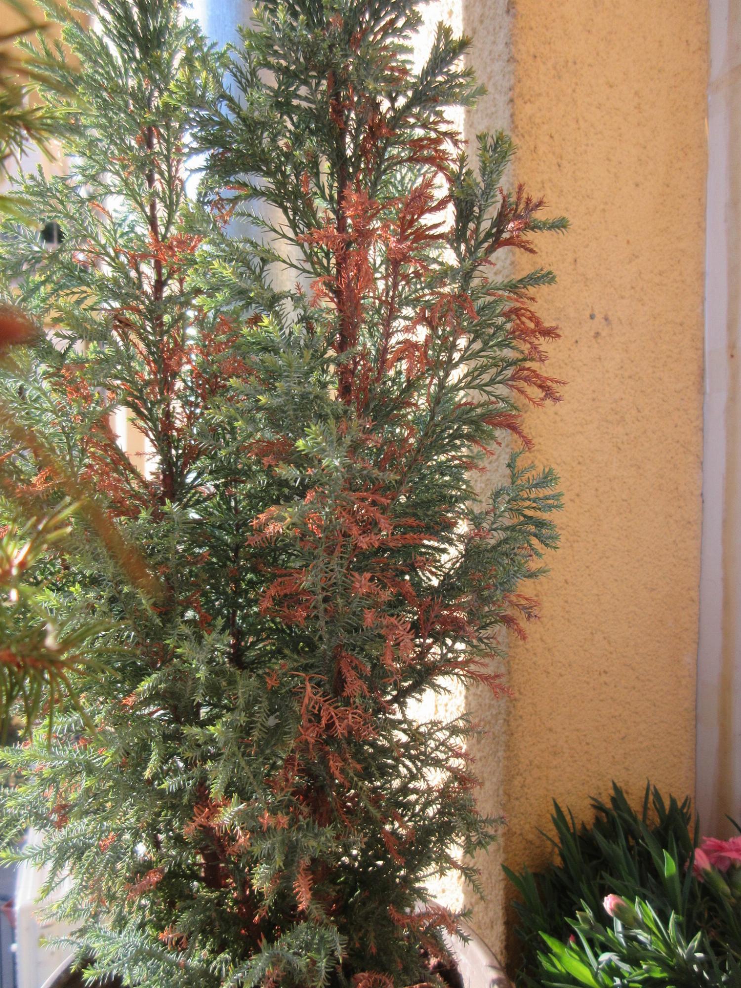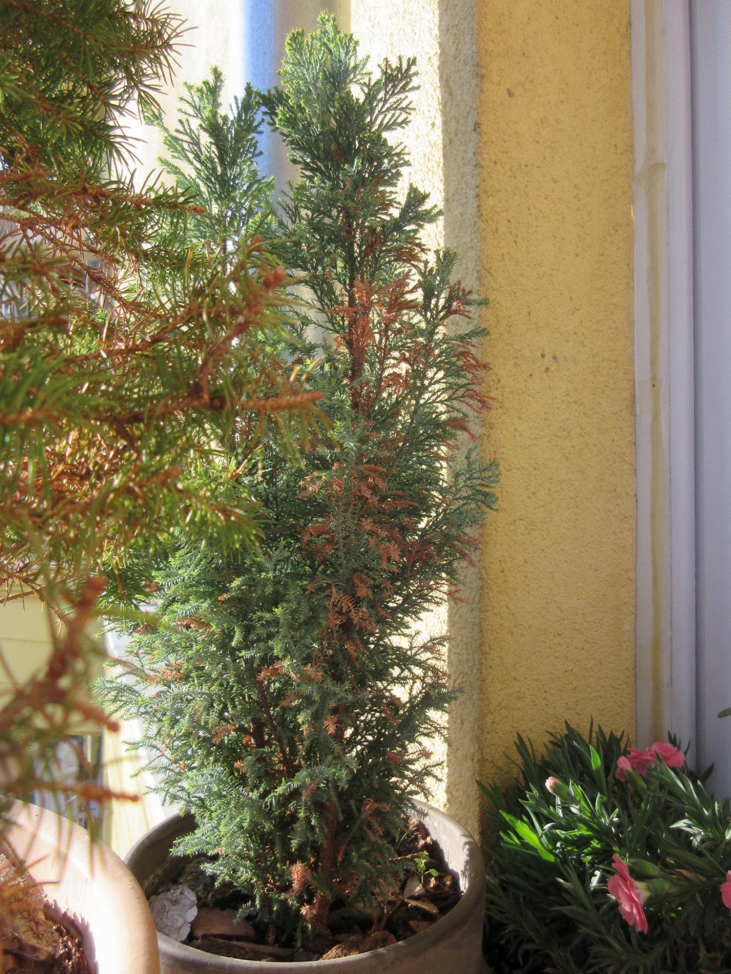 Sajnos nincs saját kertem, csak egy erkély, ahol cserépben tudok növényeket nevelni. Azért is próbálkozom örökzöldekkel, hogy egész évben legyen ott növény, de tudom, hogy a változó klíma nem kimondottan kedvez nekik. A másik gondom a tujákkal van (szintén cserépben), néhány évig nagyon szépen fejlődtek, de idén nyáron -hiába permeteztem vízzel minden nap- nagyon csúnyák lettek. Némelyik teljesen elszáradt, a többinél egyelőre foltokban jelentkezik a barnaság. Gondolom ez is egy fajta gomba, vagy egyéb betegség. Mit javasol, mit tudok tenni velük, hogy megmentsem őket?