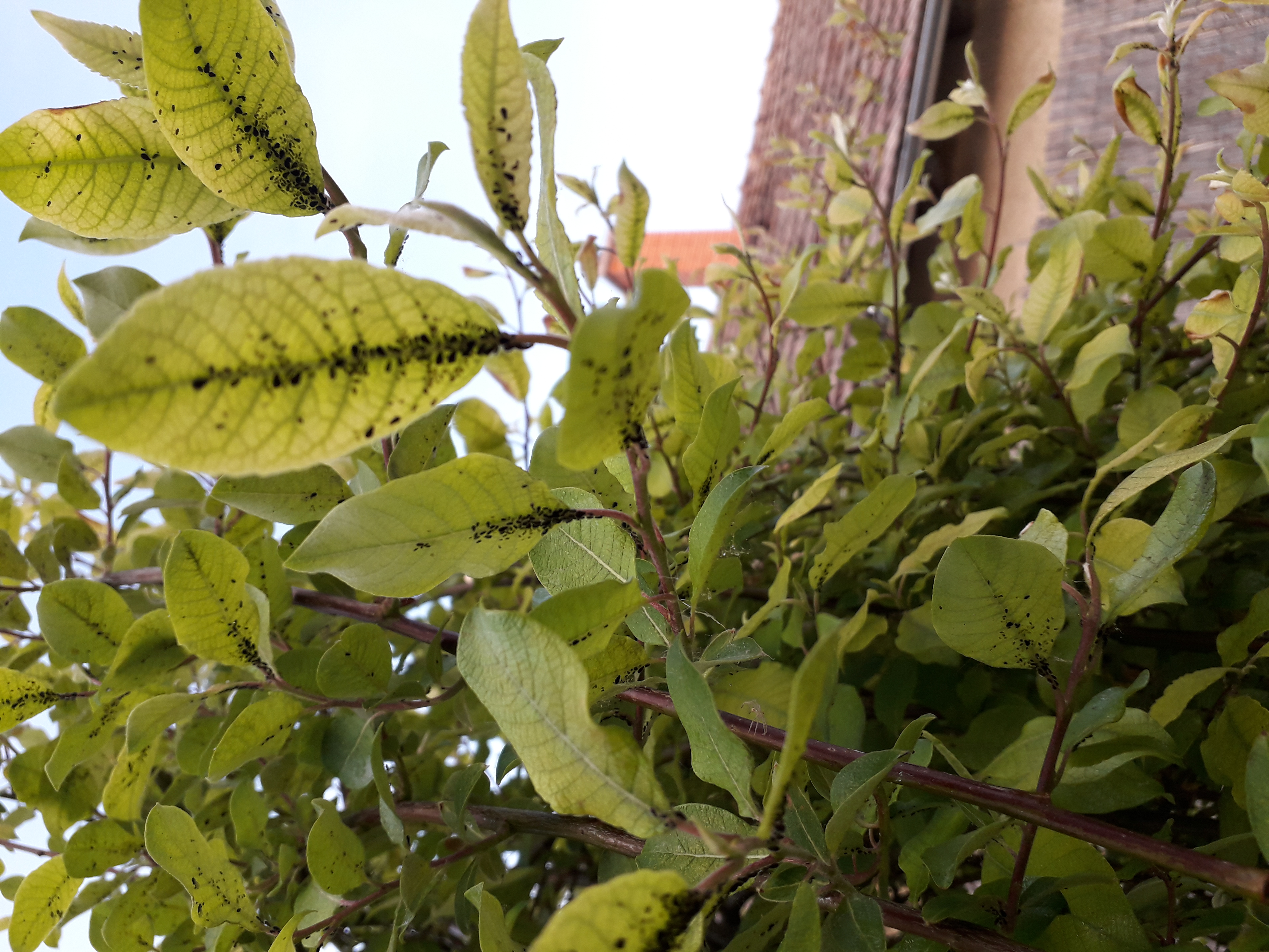Erős levéltetűfertőzés. Mospilan, Karate vagy más felszívódó hatású levéltetű ölő szerrel permetezze, illetve öntözze be.