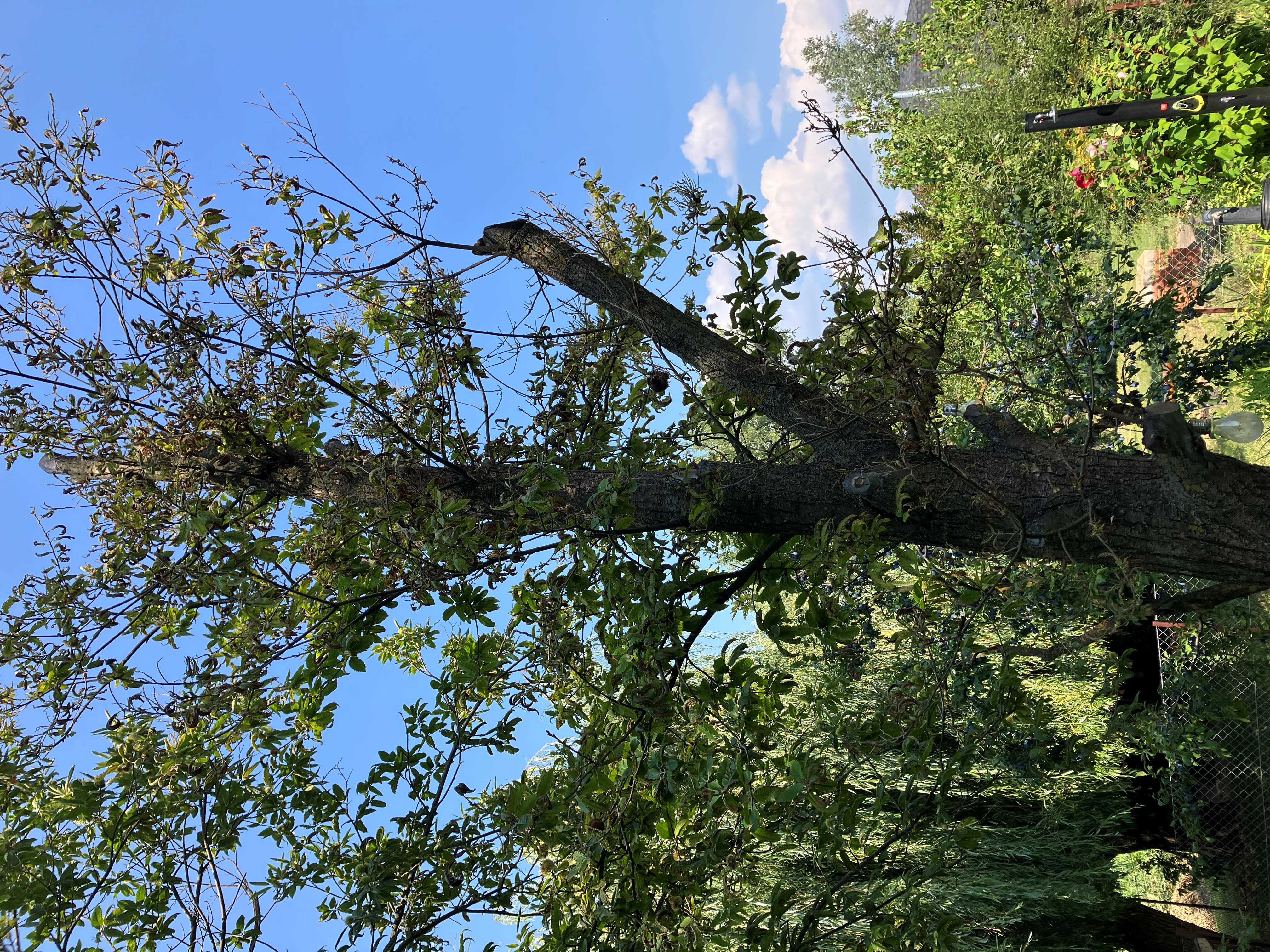 Készítettem néhány fotót a fáról, és a fölső levágott, és a száradóban lévő ágról. Az egyik képen, a törzsből kiágazó lentebb lévő ág kéreg felrepedését is láttam. A tavaszi vágáskor inkább a levágott ágak tövében tapasztaltam kéreg puhulást. A teljes fát ábrázoló képen a legközelebbi alsó ág sem tetszik, lehet, hogy ez is elszárad hamarosan, és vágnom kell? Tavaly a termés mennyisége és a minősége is átlagos jó minőségű volt.