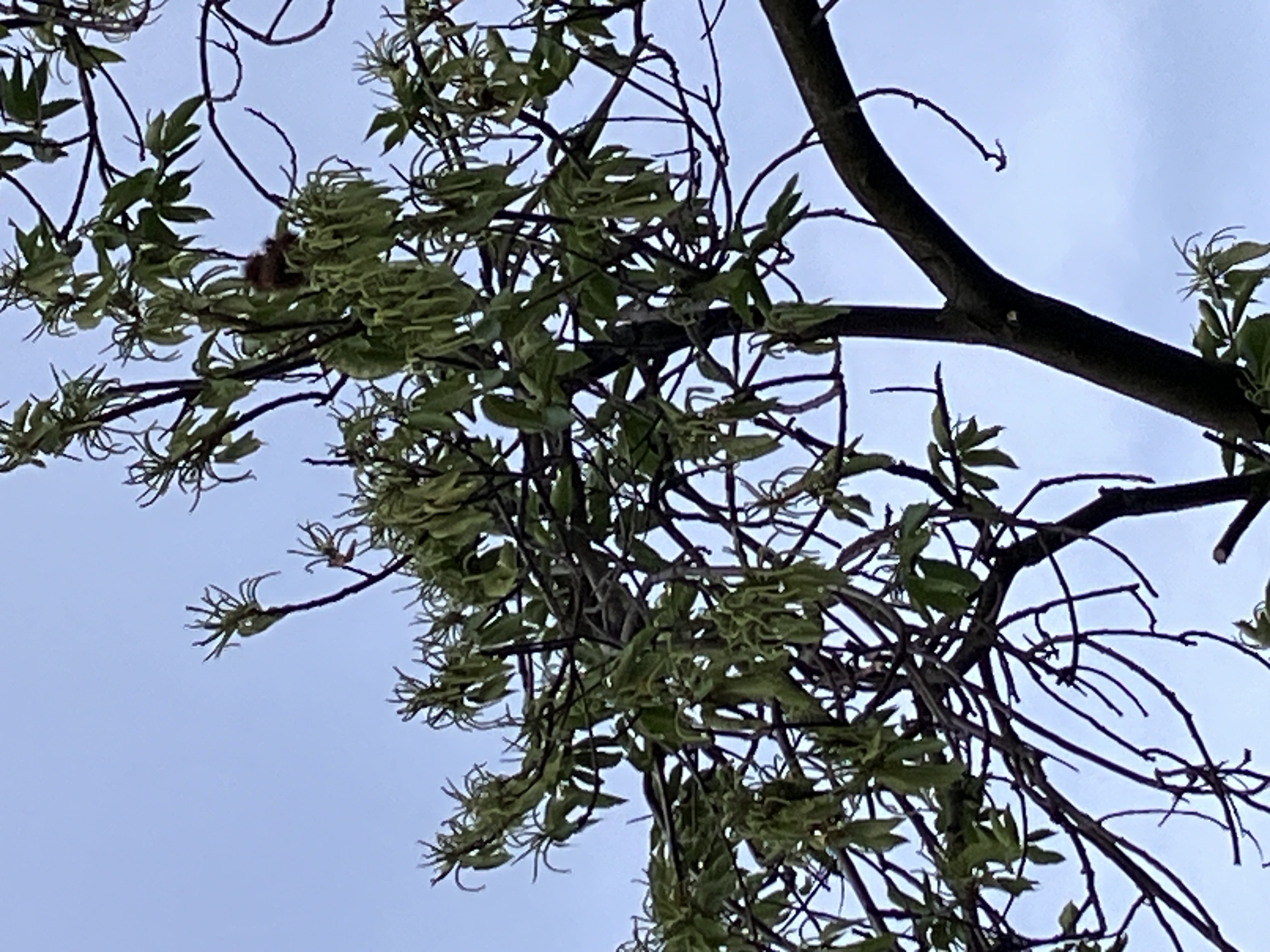 A Tiszántúli fa levelei tavasszal elkezdenek sárgulni, majd nyáron rozsdásodni, és száradni, és egy két kisebb ág is elszárad az év végére.