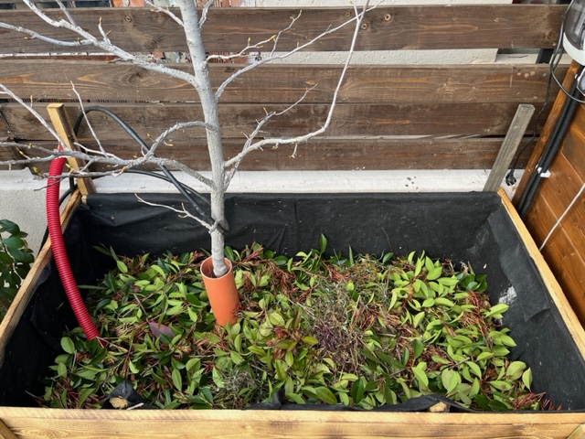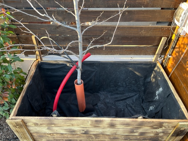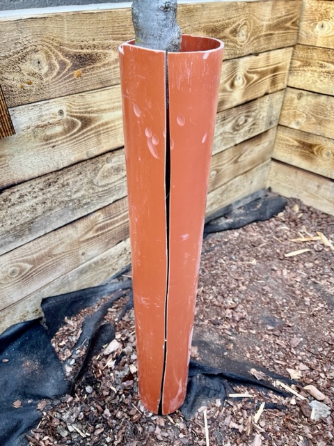 A lehető legrosszabbat tette, amit csak lehet! Kérem, vegye ki a növényt a magaságyásból és ültesse ki szabadföldbe, csak a gyökérnyakig ültesse el. Ha még nem pusztult el szegény fa. A törzs köré légátersztő törzsvédőt tegyen, ha damilos fűnyírásra kerül sor. A PVC cső alatt berohat a kéreg! Ilyan körülmények között nem él túl egy fa!