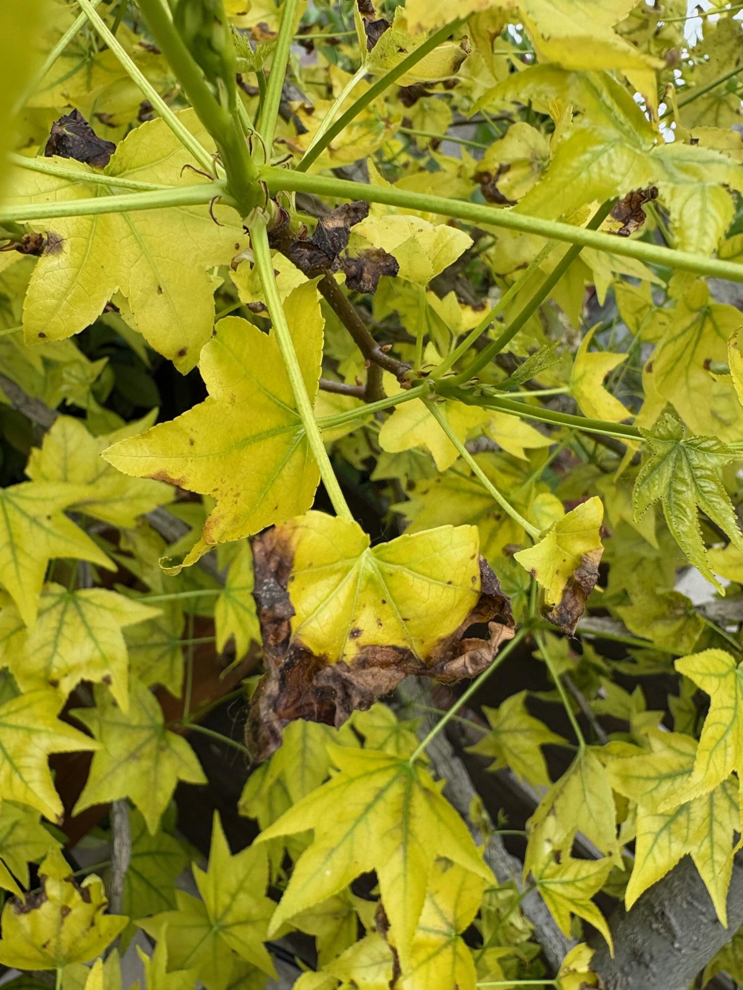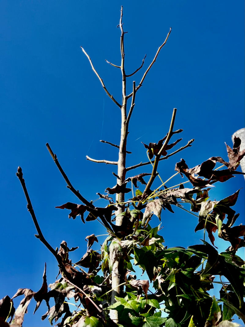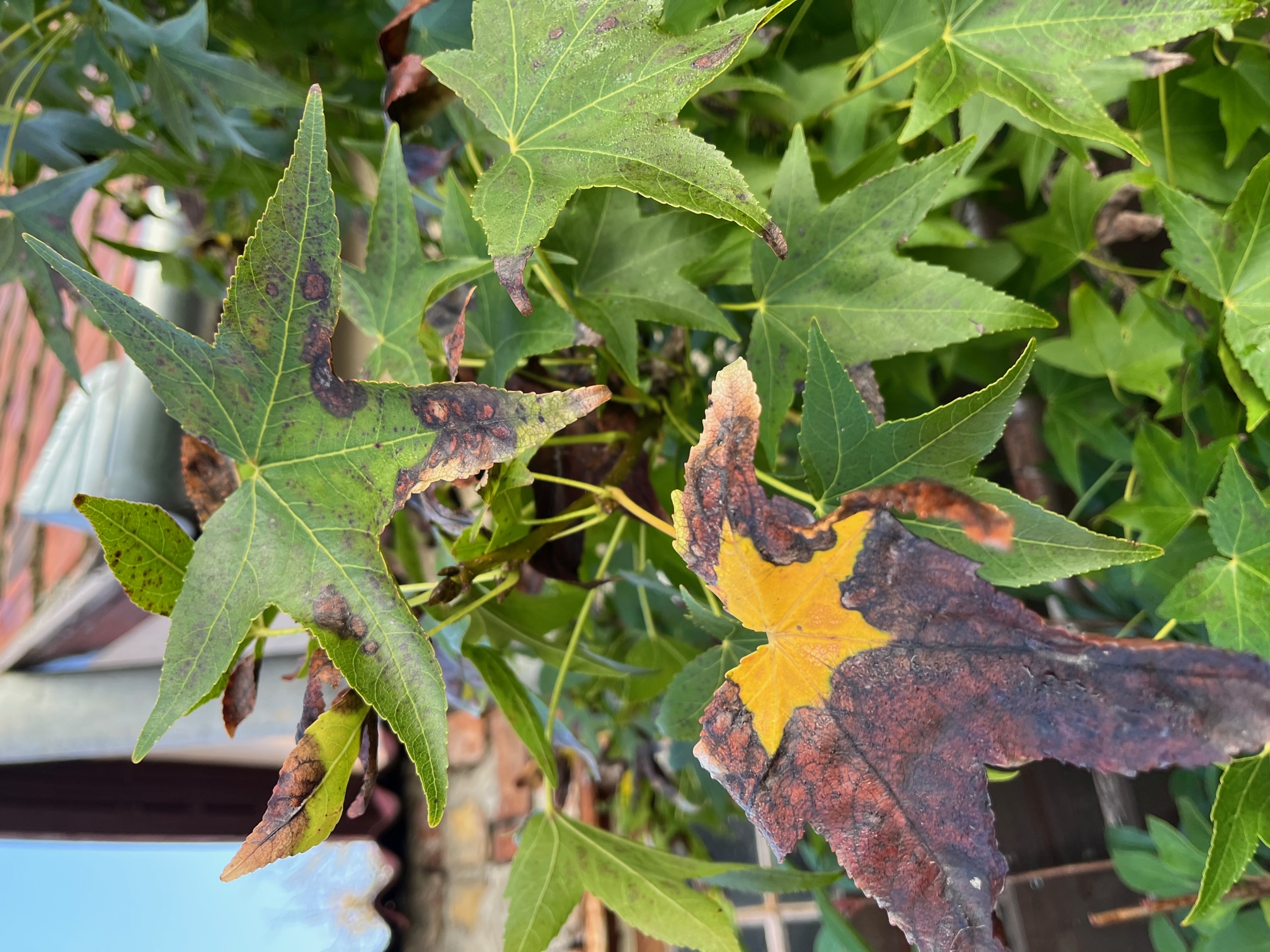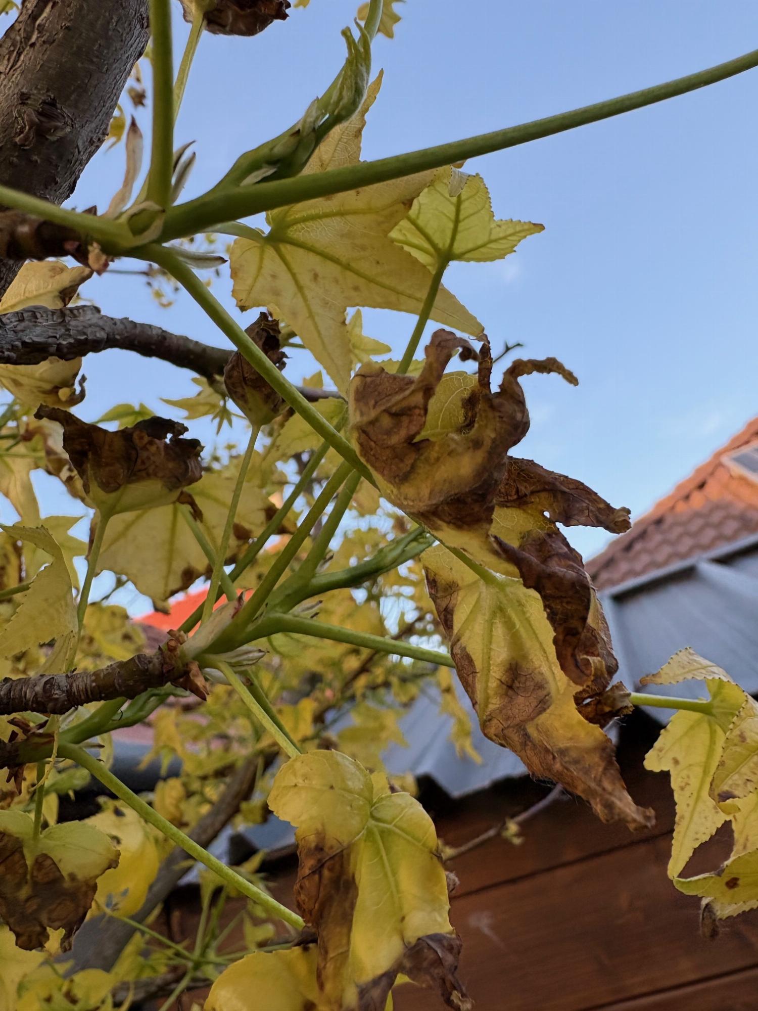 Sajna úgy érzem, idén már nem tudunk mit tenni az említett ámbrafával, lassan teljesen lehullanak az elbarnult levelek. Az ágakon is látom az elhalás jeleit, főleg a törzs csúcsán és úgy látom lassan halad lefelé. (azóta persze kap napi szinten öntözést, kapott egy kis Biosol Fortet a 'csövön keresztül' a gyökereihez de gondolom már késő...