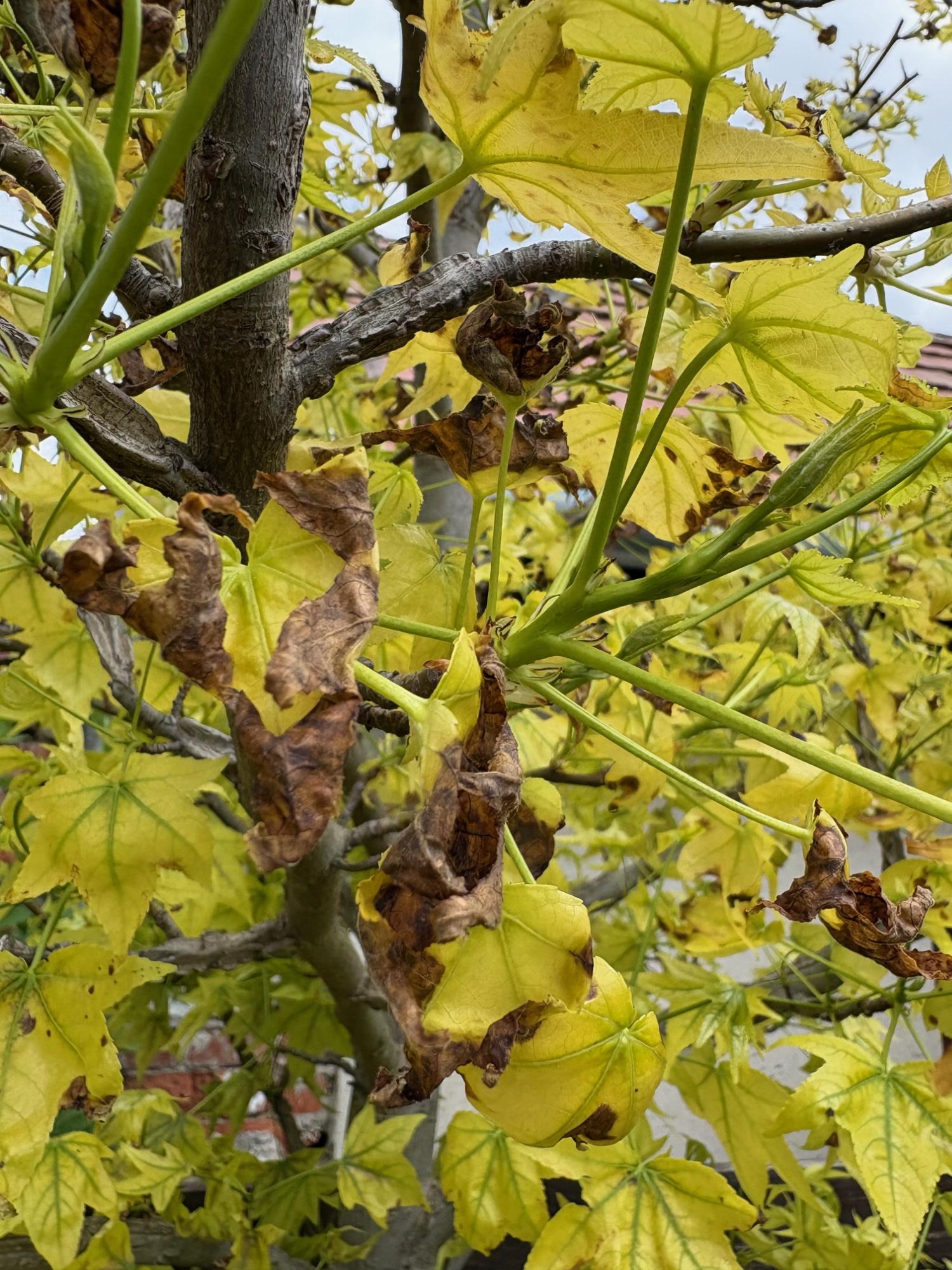Szintén tanácsa szerint, koronaalakító metszéssel eltávolítottuk az elhalt, beteg ágrészeket és bár tavaly tavasszal még egészséges levelei voltak és csak később jelent meg a barnulás/sárgulás most már idén májusban is tapasztalom.