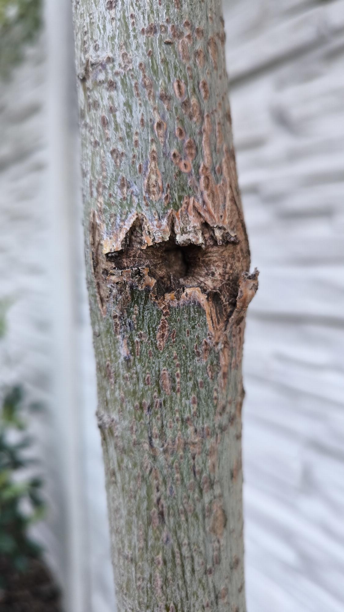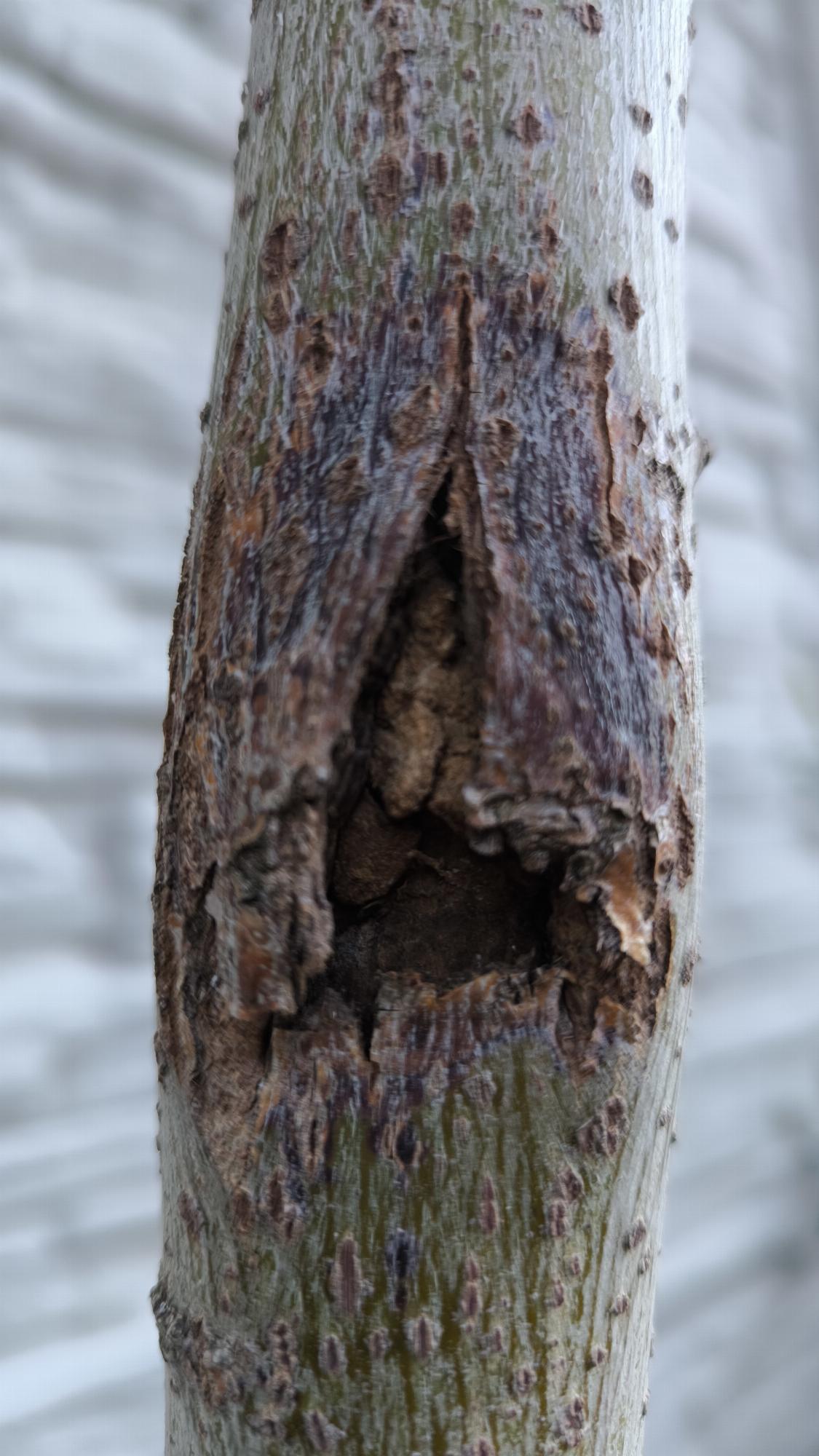 Az egyik Japán fűz törzsén 30-40 cm-ként üregek jelentek meg.