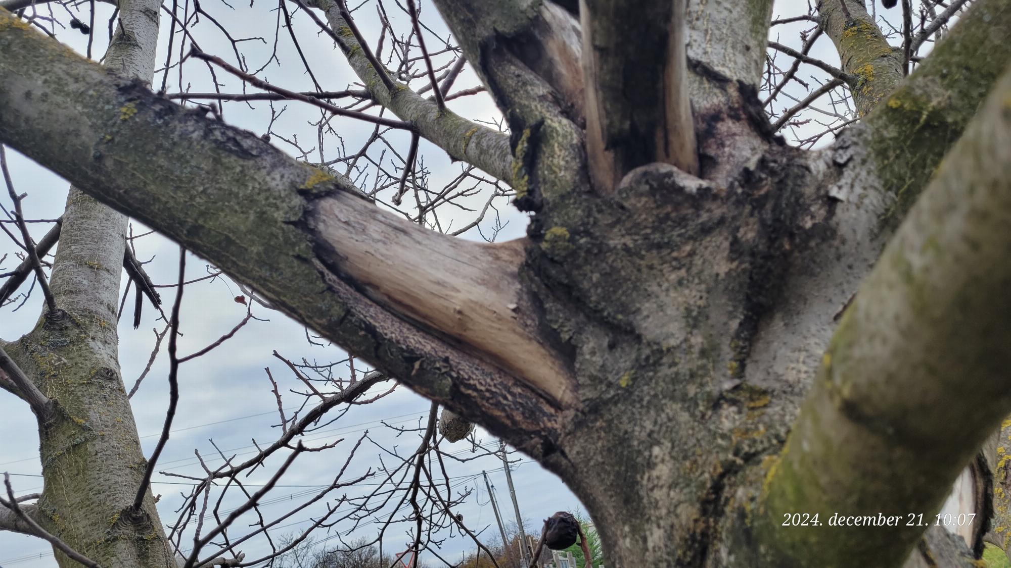 Kedves Róbert! Látszik, hogy a fa már elkezdte gyógyítani magát, amit a megvastagodott hegszövet (kallusz) jelez. Véleményem szerint azt az ágat, amin körben hiányzik a kéreg, le kell vágni és a sebet sebkezlővel lezárni. Minél előbb végezze el, mert a nedvkeringés megindulásával a fa kiszáradhat. A sebeket, odvakat ki kell tisztítani egészséges részig. Por alakú réztartalmú szerből (Champion, Bordói por) vízzel sűrű pépet keverni és bekenni, majd jutacsíkkal, illetve könnyű fáslival betekerni. Az üregek pur habbal való kitöltése, majd megszilárdulás után formázása is megfelelő megoldás. A dió vízigényes, ezért támogassa a gyógyulását a nyáron öntözéssel. Tavasszal, amikor már 8-10 C-fok fölé emelkedik a hőmérséklet, rezes lemosó permetezés is javasolt.