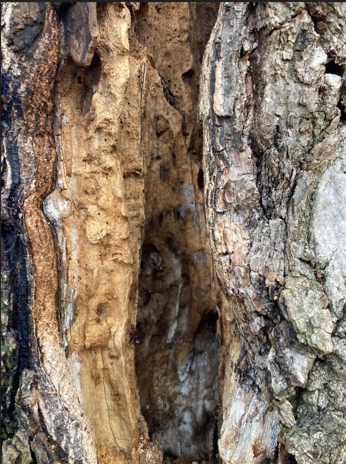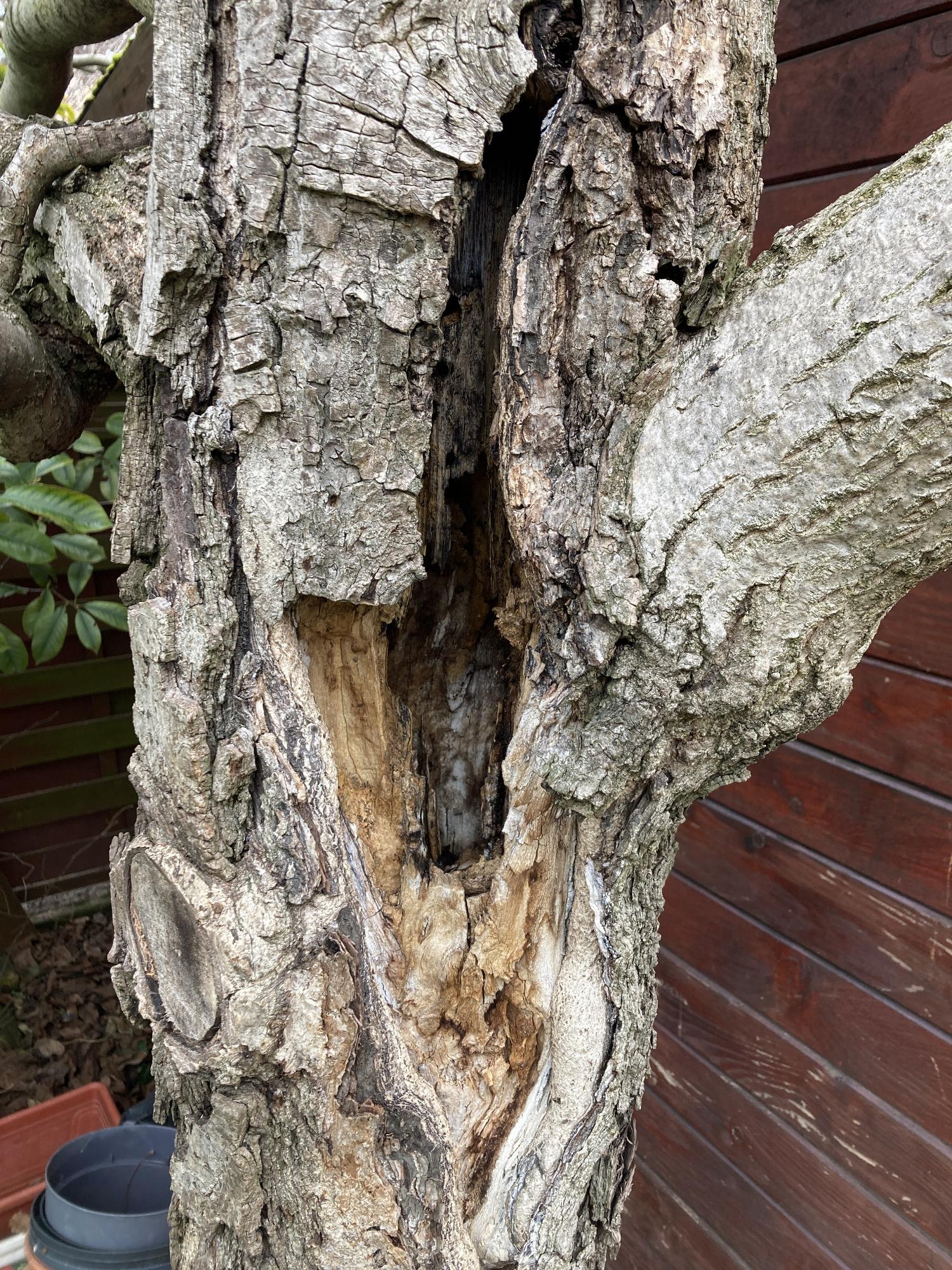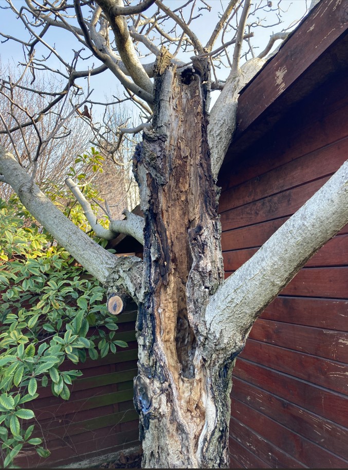 másik téma: azért kellett levágni, mert a törzse közepe elkezdett kirohadni (erről csatolok képet) és félek hogy nagy vihar esetében mivel a törzsnek már nincs közepe/tartása, szét fog függőlegesen hasadni, ezért szedtem kisebbre a koronáját főként az oldalra vízszintesen messze kinyúló részeket.