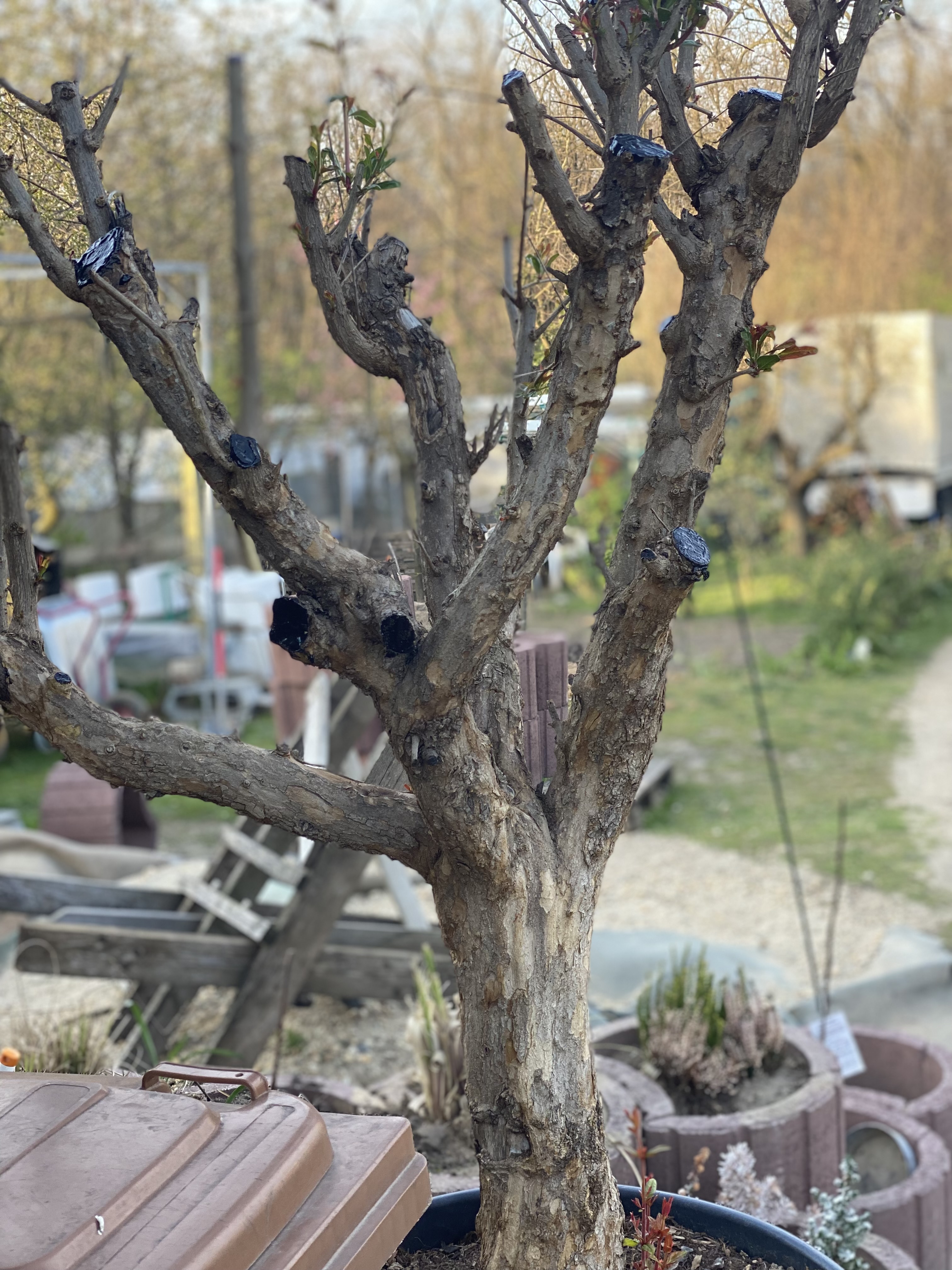 Vettem nem rég egy gránátalma fát dézsába van és most vettem észre hogy hangyák mászkálnak rajta.. Illetve ahol anno vissza vágták nem kelezték le az ágakat és olyan mint ha szuvas lenne azt lekentem ilyen tapasszal a kérdésem vagjam le beljebb azokat az ágakat és úgy kenjem le?