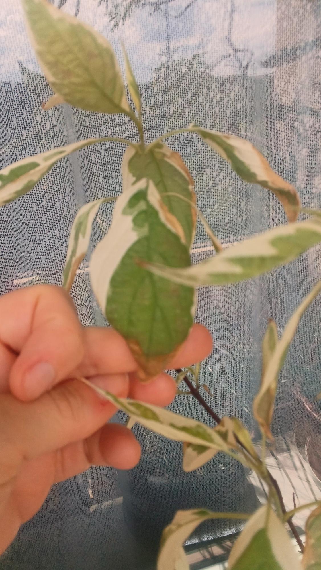 Kedves Lola. A növényt ki kell a kertbe ültetni. Valószínűleg napégés, de lehet tápanyaghiány, mert keves neki a cserépföld.