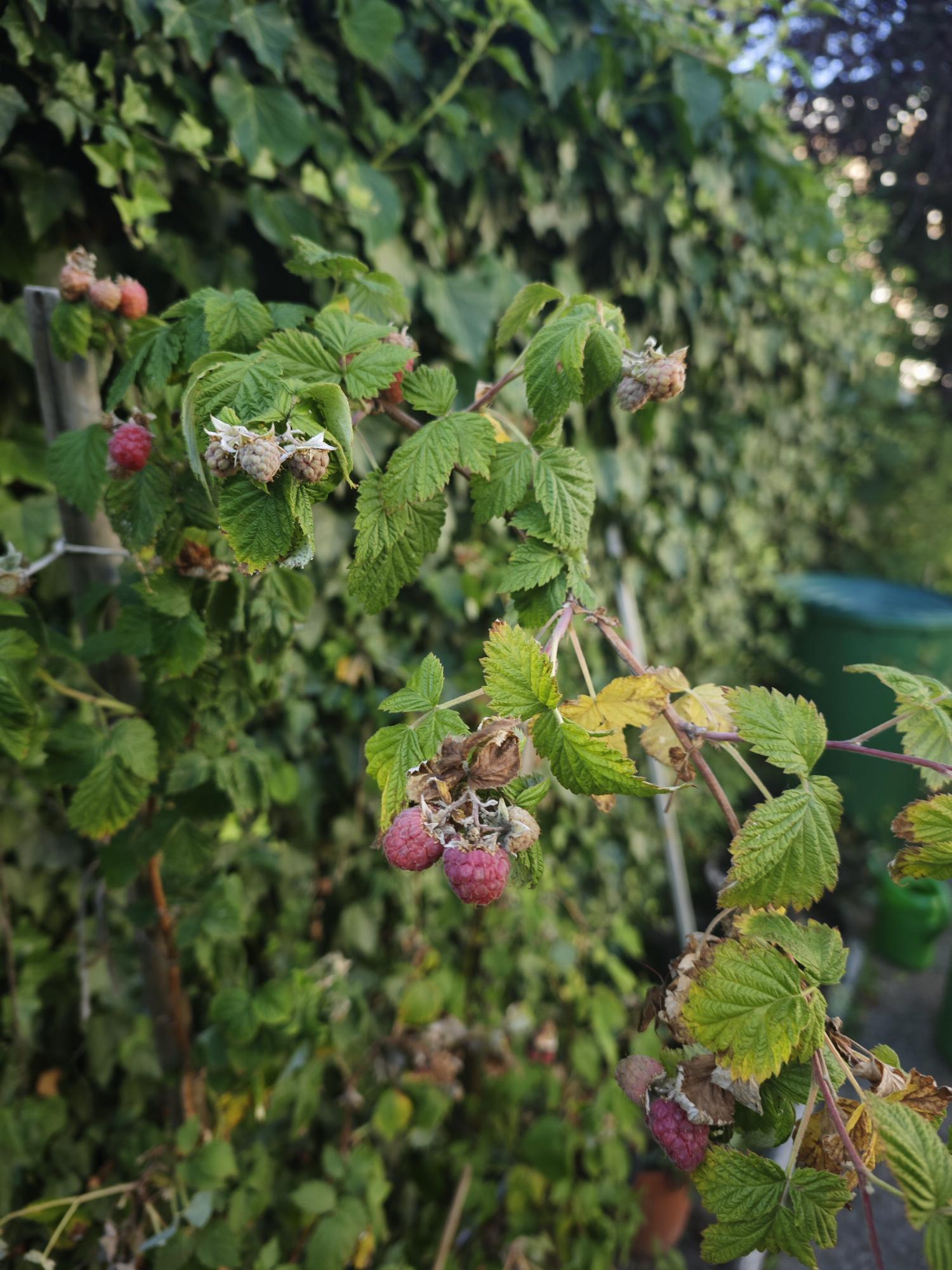 Meg tudná a képek alapján mondani mi baja a málnámnak. Az éven kevés gyümölcsöt hozott, azok is fénytelenek és löttyedtek volntak, némelyiken szürke penész is látható volt. A levelek pedig a két éves hajtásokon elszáradtak és sárgák voltak. Ezeket tőből levágtam és eltávolítottam. Az friss vesszők is kezdenek sajnos itt ott sárgulni, és elég kókadtak, mintha kevés lenne nekik a víz. Pedig öntözöm.