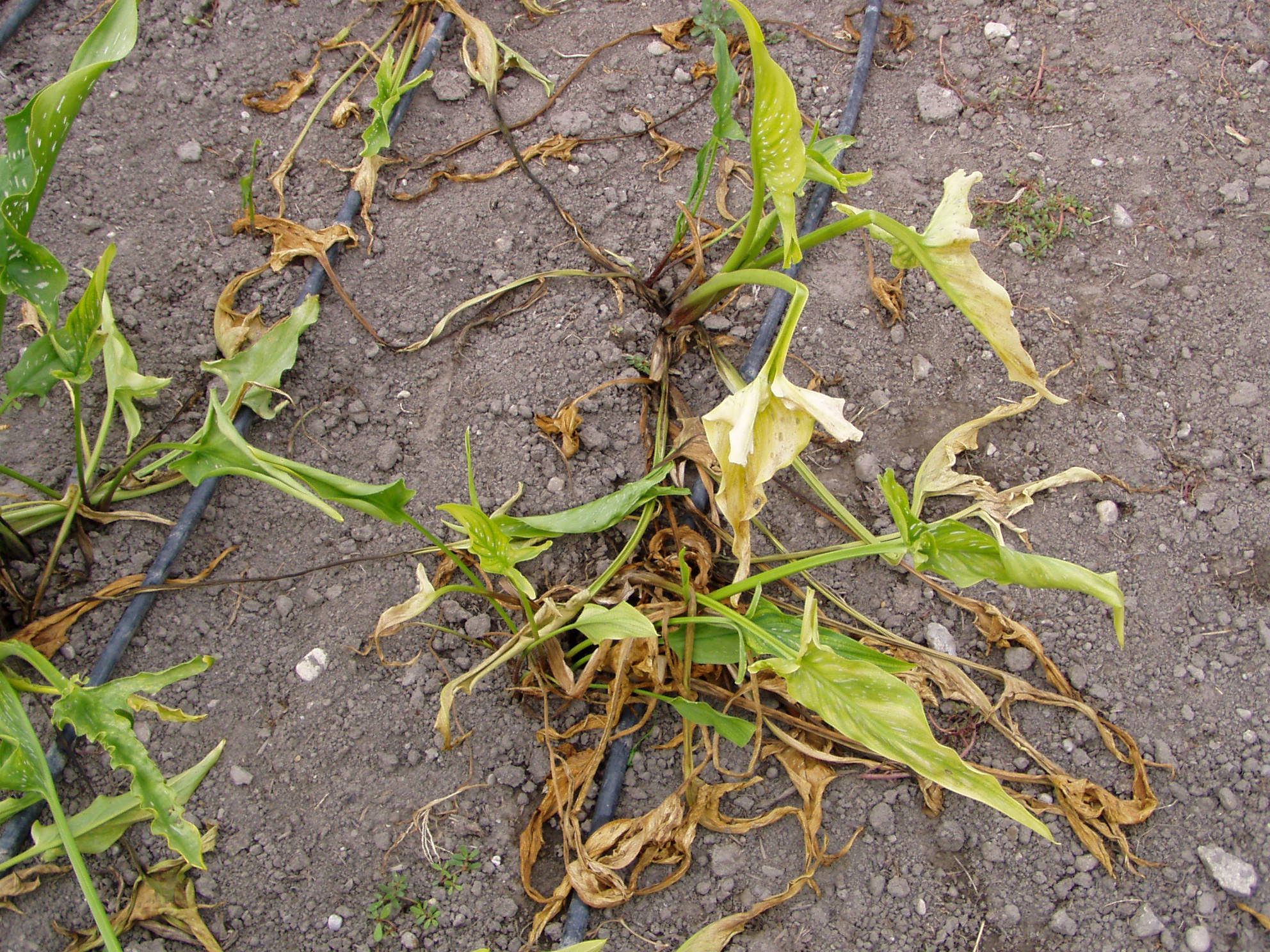 Kertünkben egy kála fajtát neveltünk jó egynéhány éve minden gond nélkül,el tekintve a virág rovar kártevőitől.Az utolsó három évben meg jelent egy nagyon gyors lefolyású betegség mégpedig a rizóma lágyrothadás /a rizóma állapota erre utal/