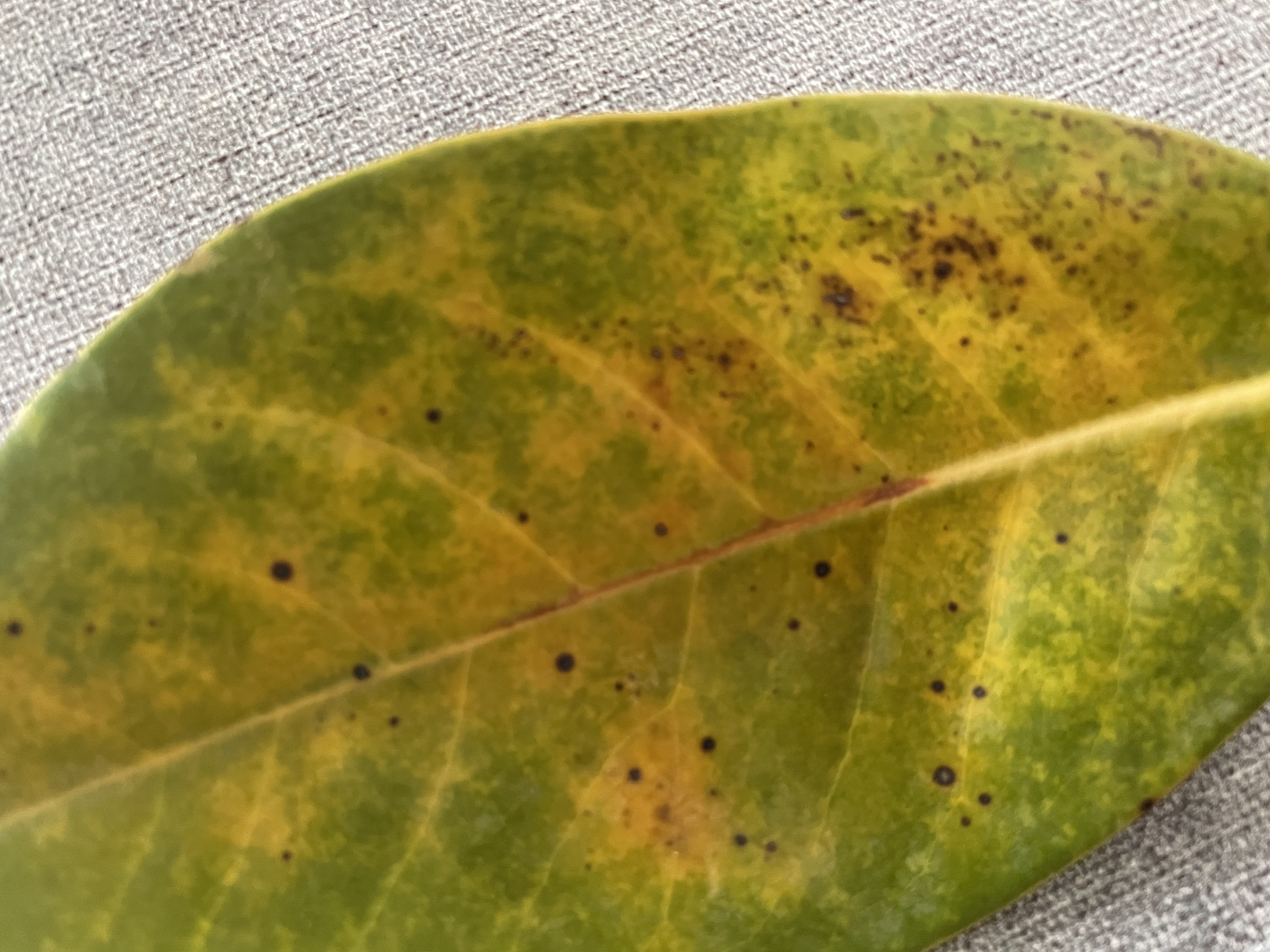 Az örökzöld magnóliámnak sárgul és pöttyös néhány levele. Egyébként dézsában van, és hoz új hajtásokat is. Mi lehet a levél sárgulásnak a pöttyökkel az oka?