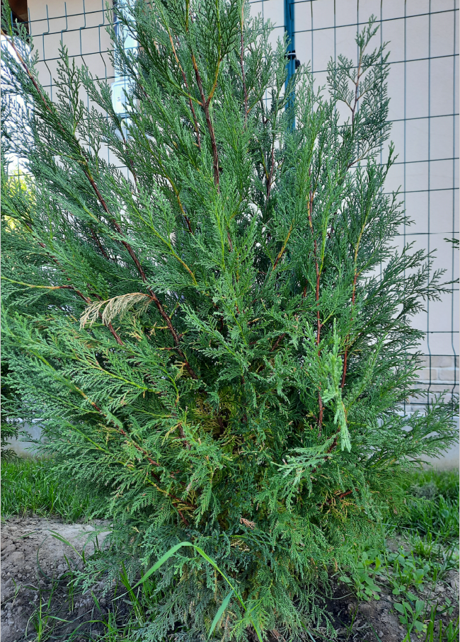 Tavaly ősszel ültettünk 6 db Cupressocyparis leylandii 'Blue Jeans' fajtájú növényt. Vásárláskor kb. 1,2 m magas, jó állapotú példányok voltak. Ősszel-télen elég sok csapadék esett, csak tavasszal kezdtük el őket locsolni.