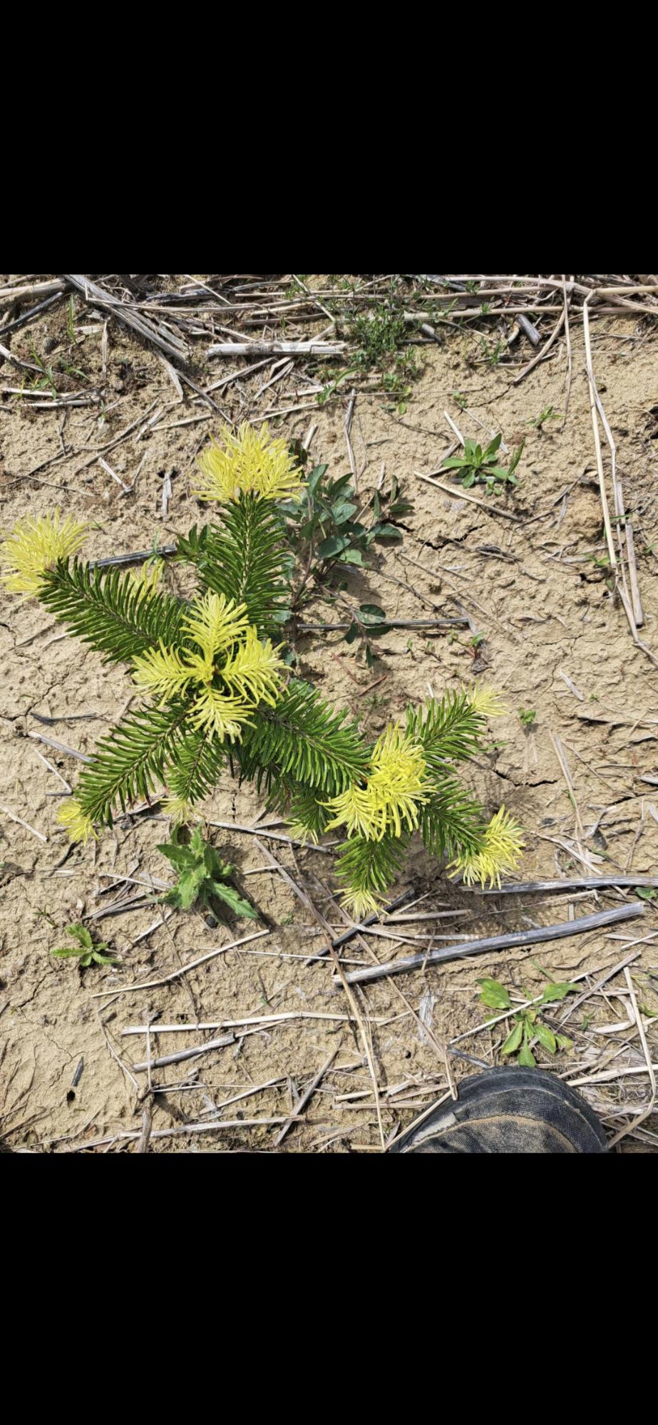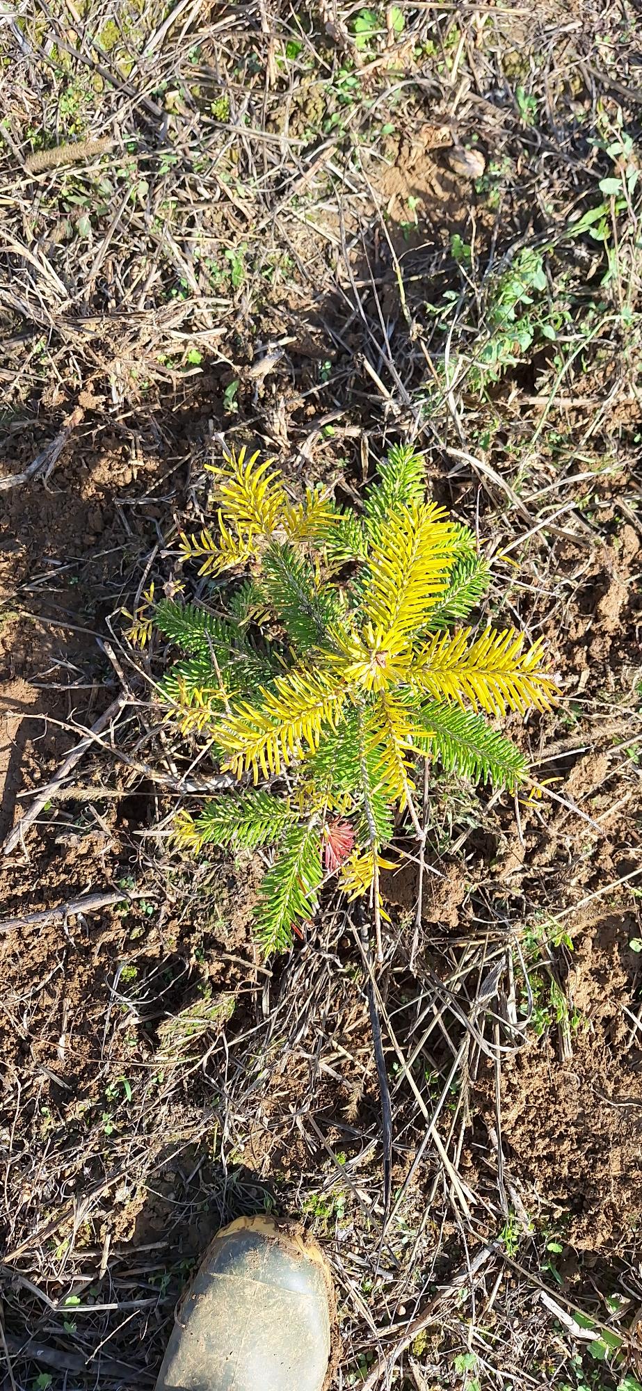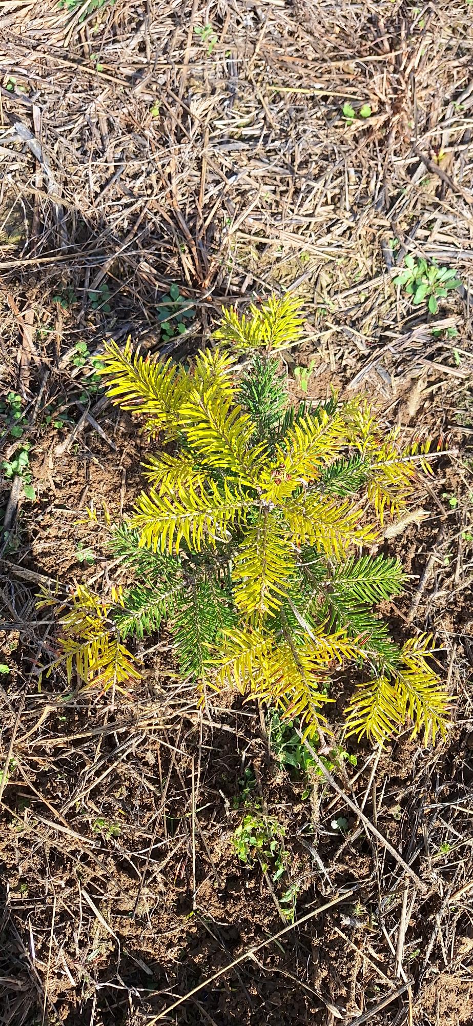 Tisztelt szakértő!Egy éves fenyő ültetvényem egyik részén ilyen sárgák a kis nordmann fenyők idei hajtása!Tavasztól kb 5-6 alkalommal kapot fenyőfára való fitohorm lombtragyát.A terület homokosabb reszén ilyenek a csemeték a többi részen szép sötét zöldek.Segítséget kérnék mi okozhatja.Az 1 kép tavaszi a másikak mostaniak.köszönöm szépen