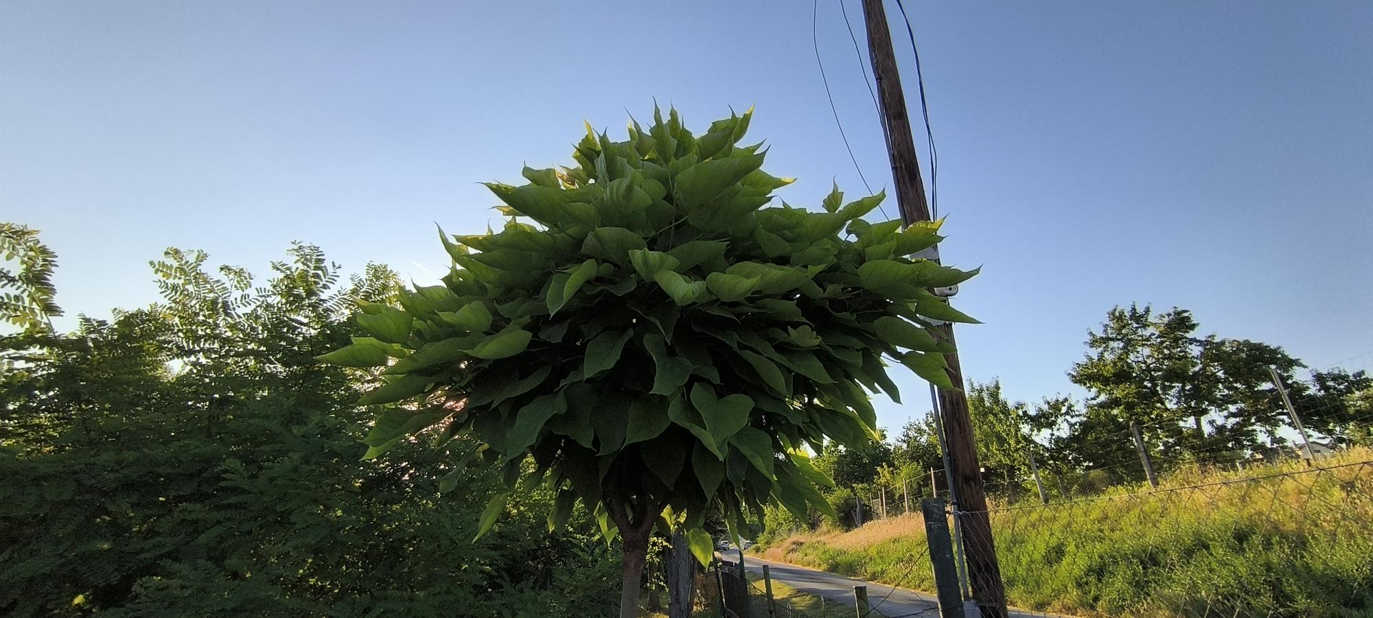Halvány zöld levelei vannak,erősen átlátszanak az erek a leveleken,felfelé pöndörödő levelek a korona tetején. Ezek a tünetek már tavaly is fennáltak,annyi különbséggel,hogy akkor a lombozat is ritkábban hajtott ki. Idén szépen belombosodott,úgy tünt rendben lesz,de aztán a tavalyi tünetek ismét jelentkeztek.