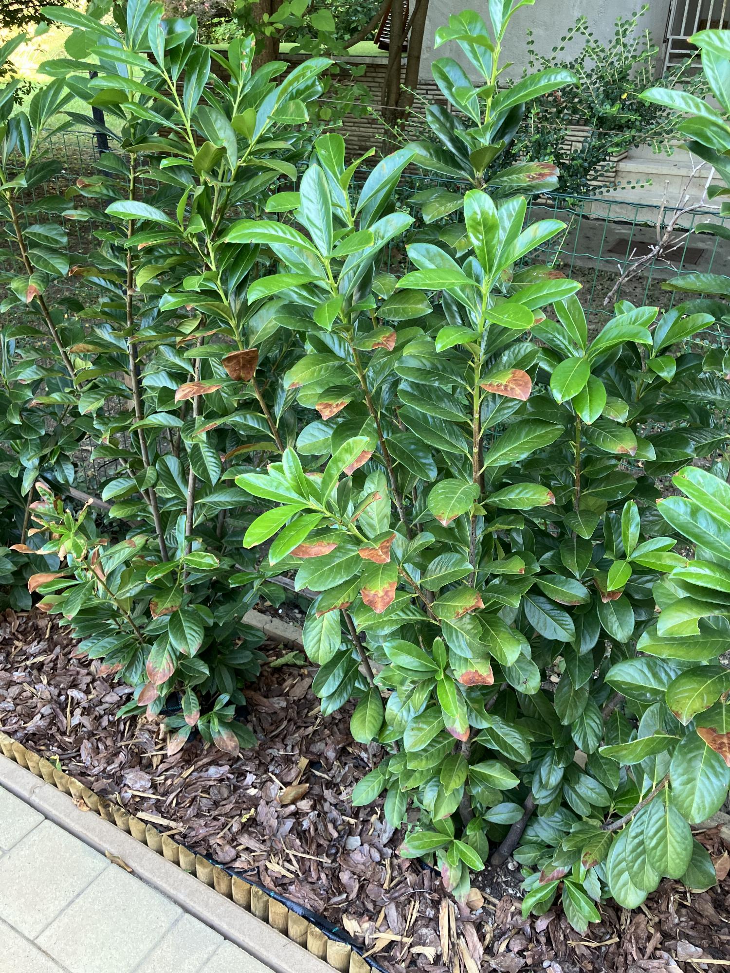 2 hónapja ültettem el 18 db 125 cm-es babérmeggyet (Novita ha jól emlékszem), szépen el is kezdtek növekedni, de pár hete a sor egyik részén hirtelen elkezdtek barnulni a levelek és lehullani.
