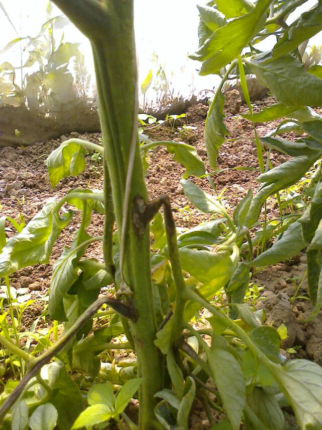 Abban kérem a segítségüket, hogy fóliás Siluet paradicsomom megbetegedett, kb az állomány 10%-ka. A betegség a paradicsom szárán és a levélnyélen kezdődve, felfelé halad. A száron barna foltok jelentkeznek, később a szár belseje üregessé válik., majd az alsó levelek elsárgulnak és az egész növény elfonnyad.